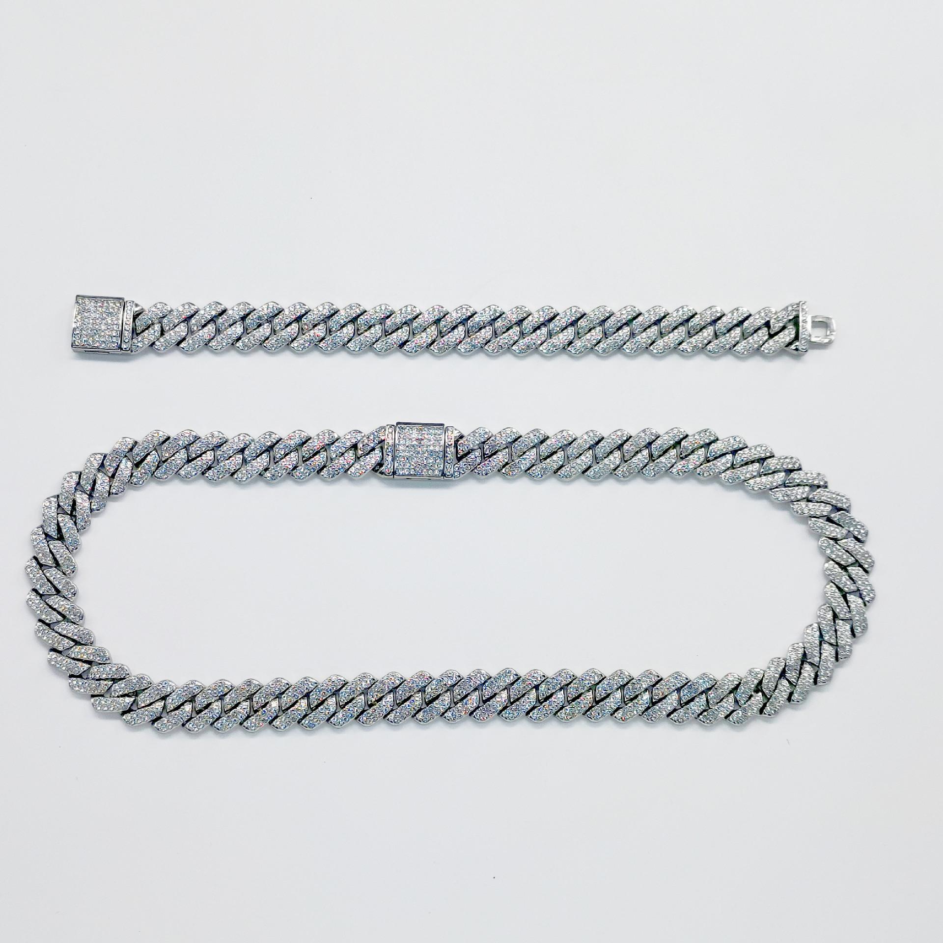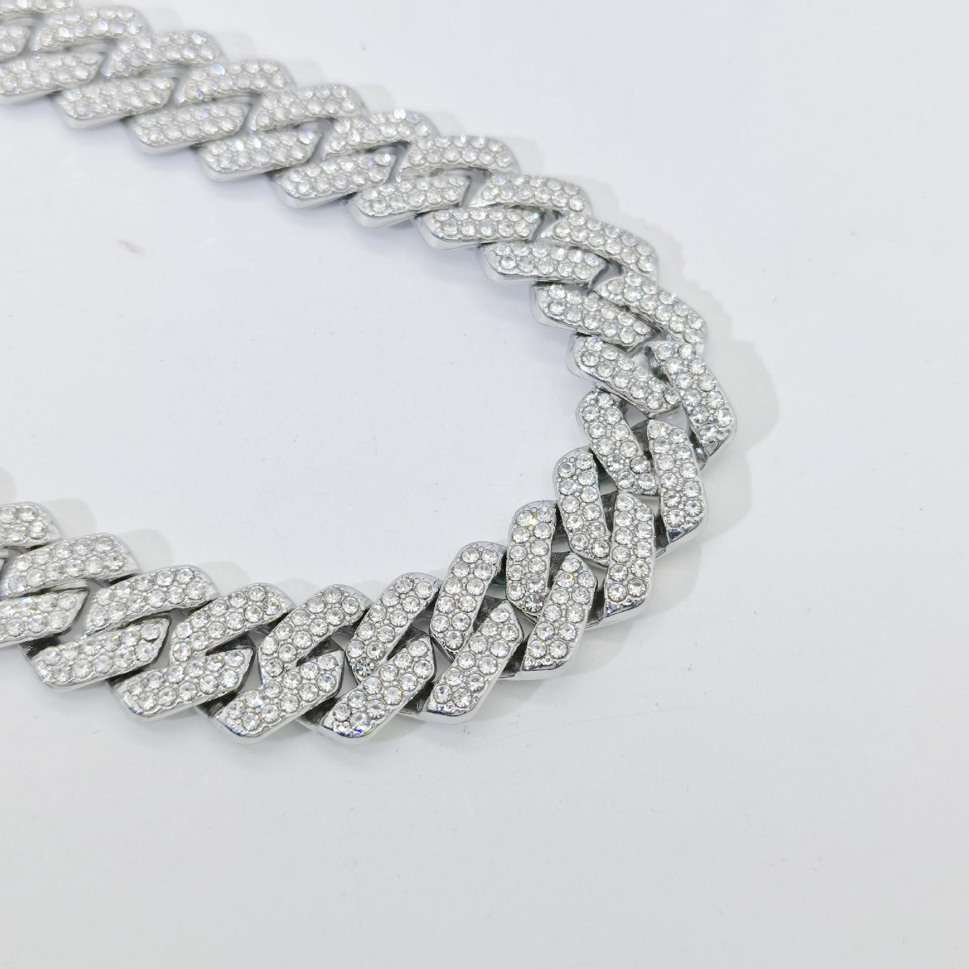 Cadena Cubana de Aleación Diamante Completo 14mm Rombo Collar para Hombre Estilo Hip-Hop Venta al Por Mayor Transfronteriza Collar Geométrico de Rombo
