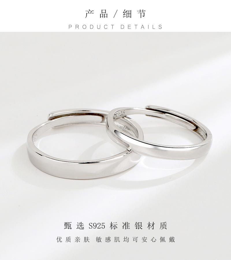 Nuevo anillo brillante para pareja, anillo de plata esterlina S925, simple, para pareja de estudiantes, regalo de San Valentín.