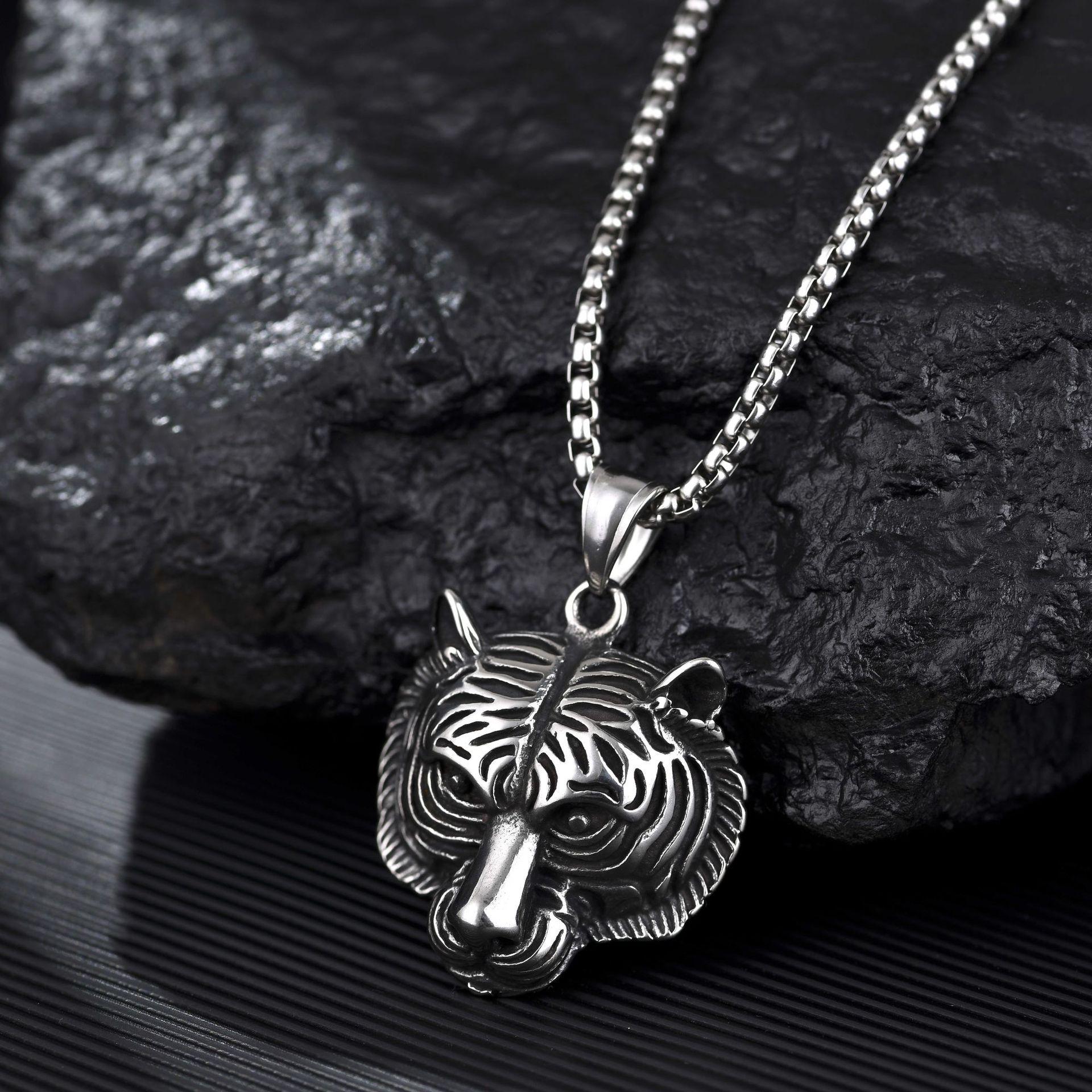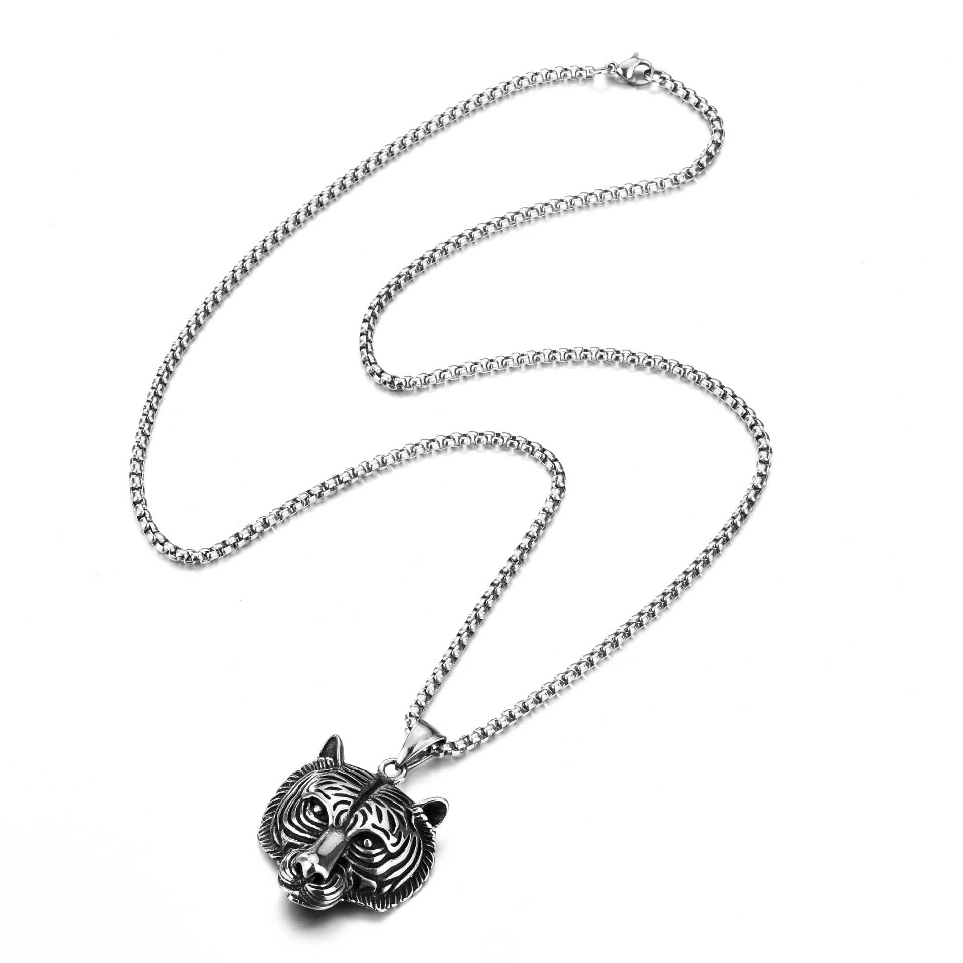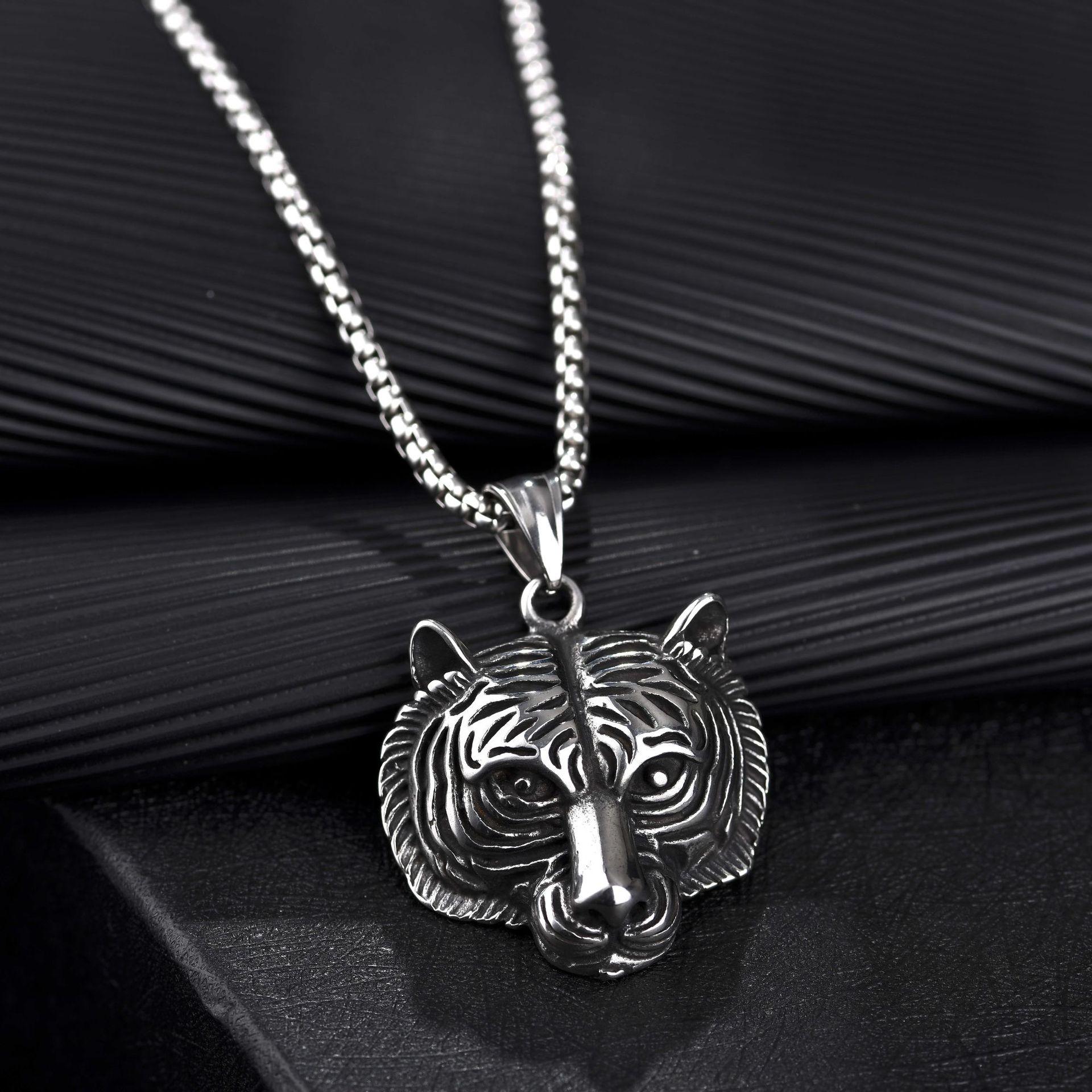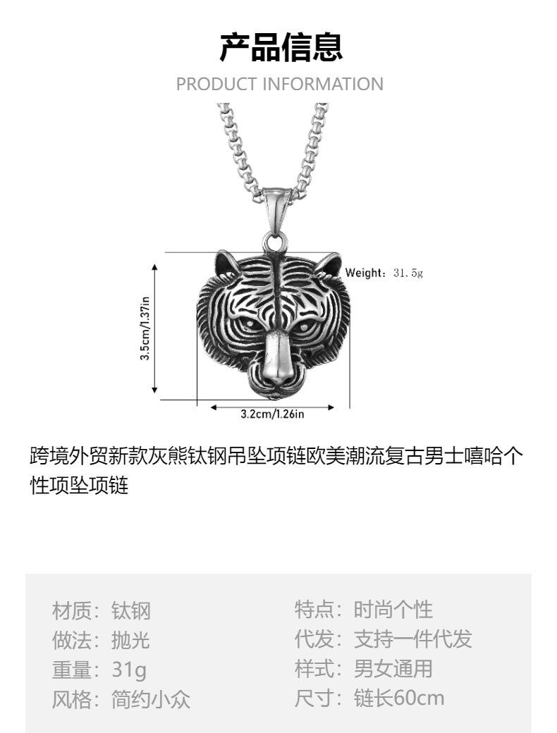 Collar colgante de acero de titanio con escudo grizzly de moda retro transfronteriza europea y americana, nuevo collar colgante de Amazon |
