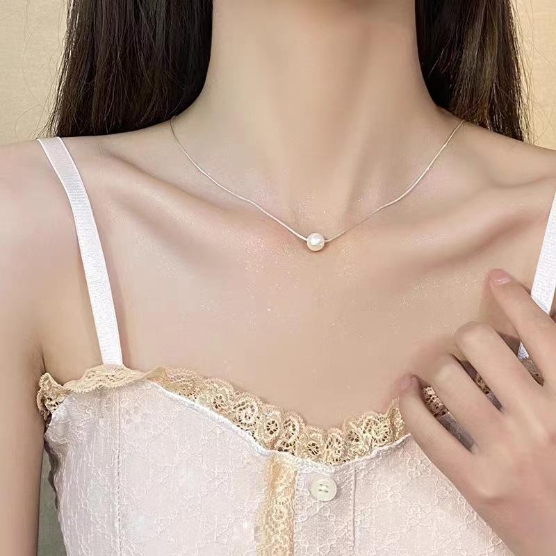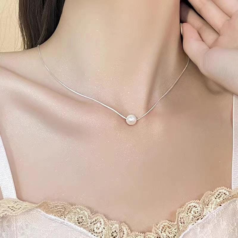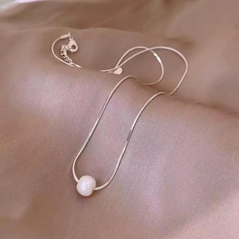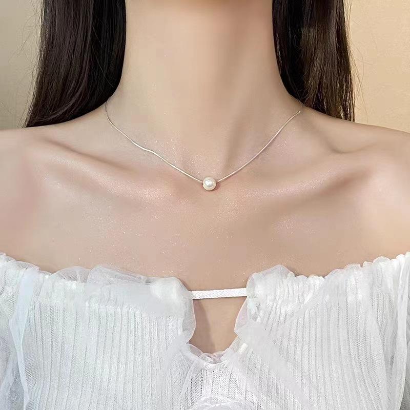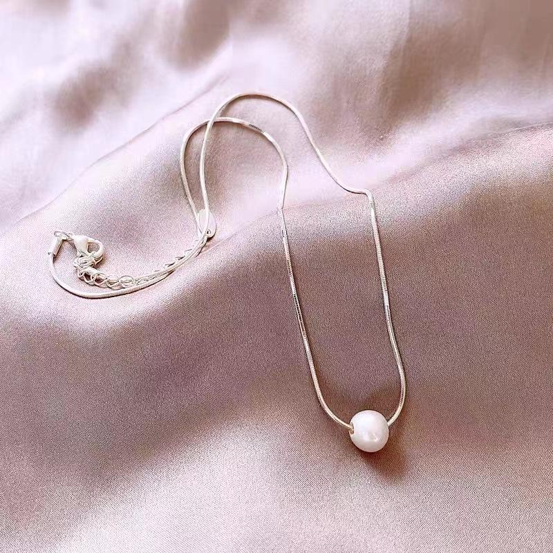 NK-76 - Colgante de una sola perla, collar de acero de titanio, nicho de lujo para mujer, cadena de clavícula, joyería, colgante al por mayor