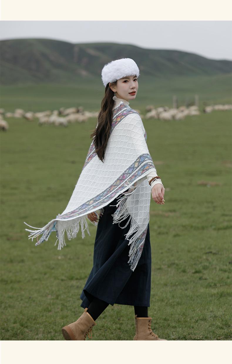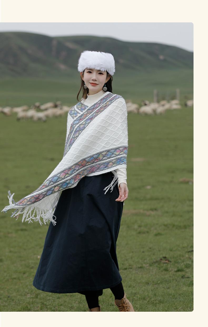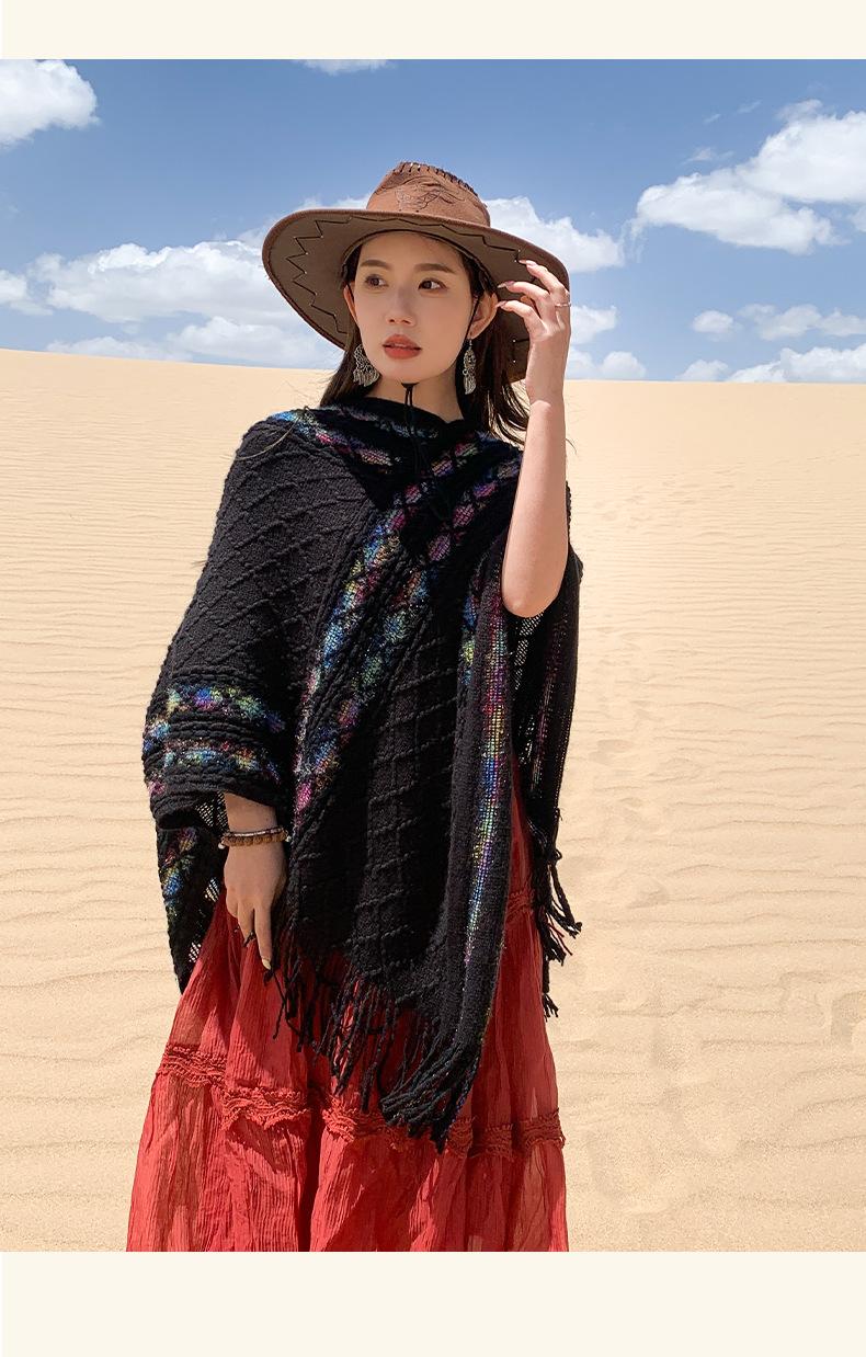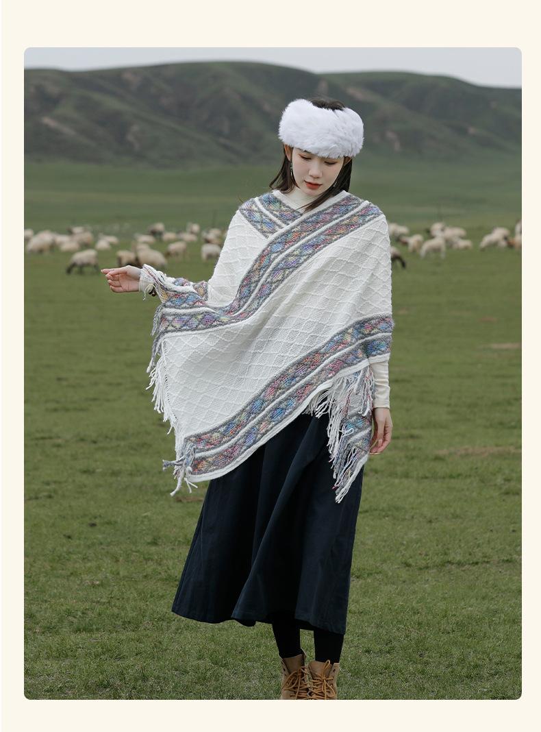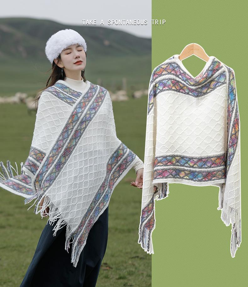 Otoño e Invierno nuevo chal de estilo étnico suéter de punto para mujer chal cálido engrosado viaje a Xizang capa con borlas ropa exterior