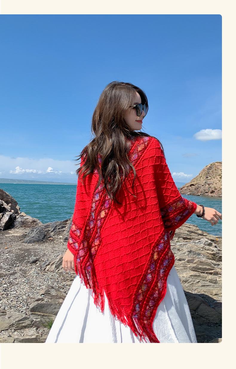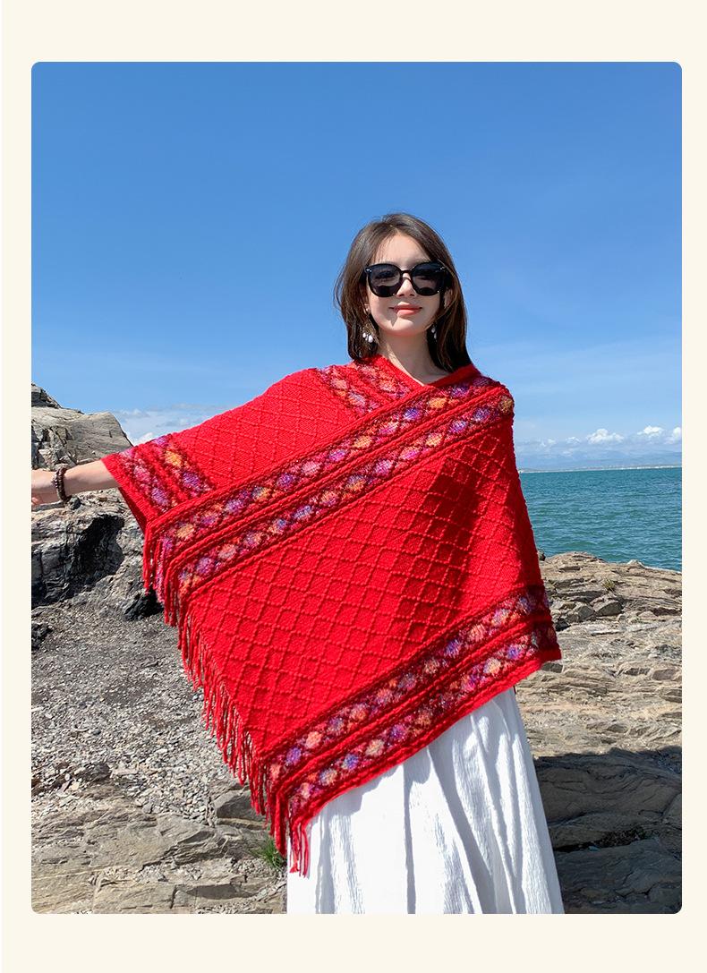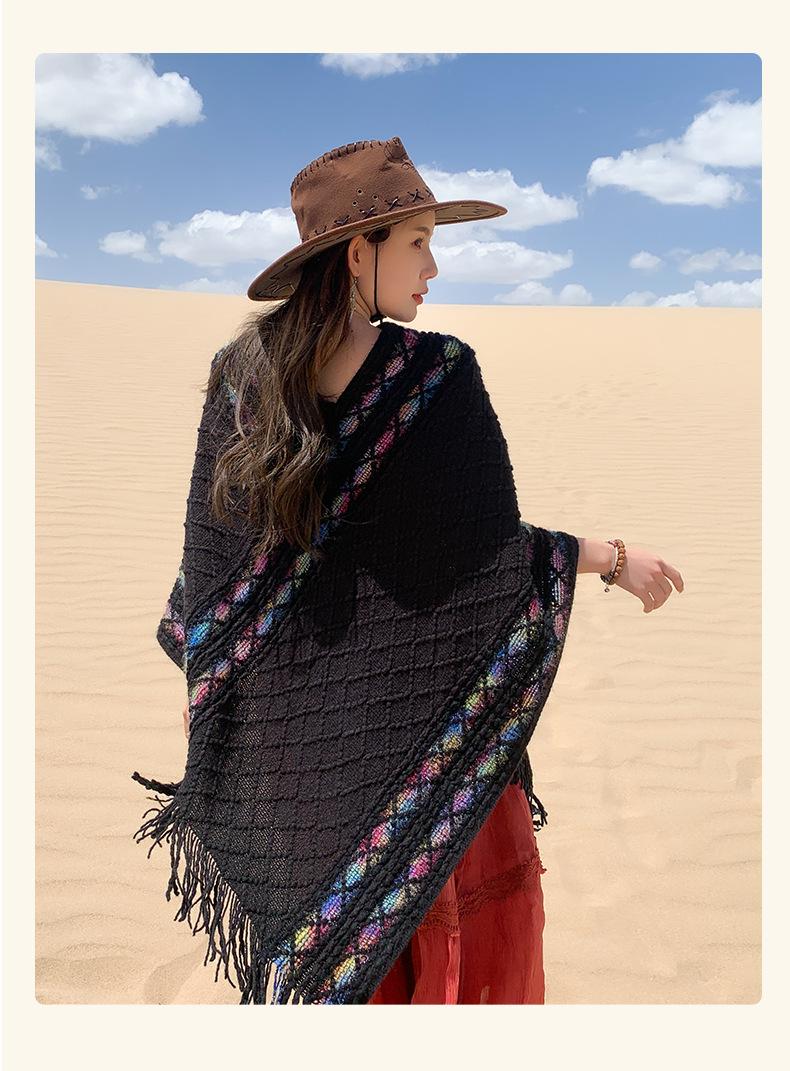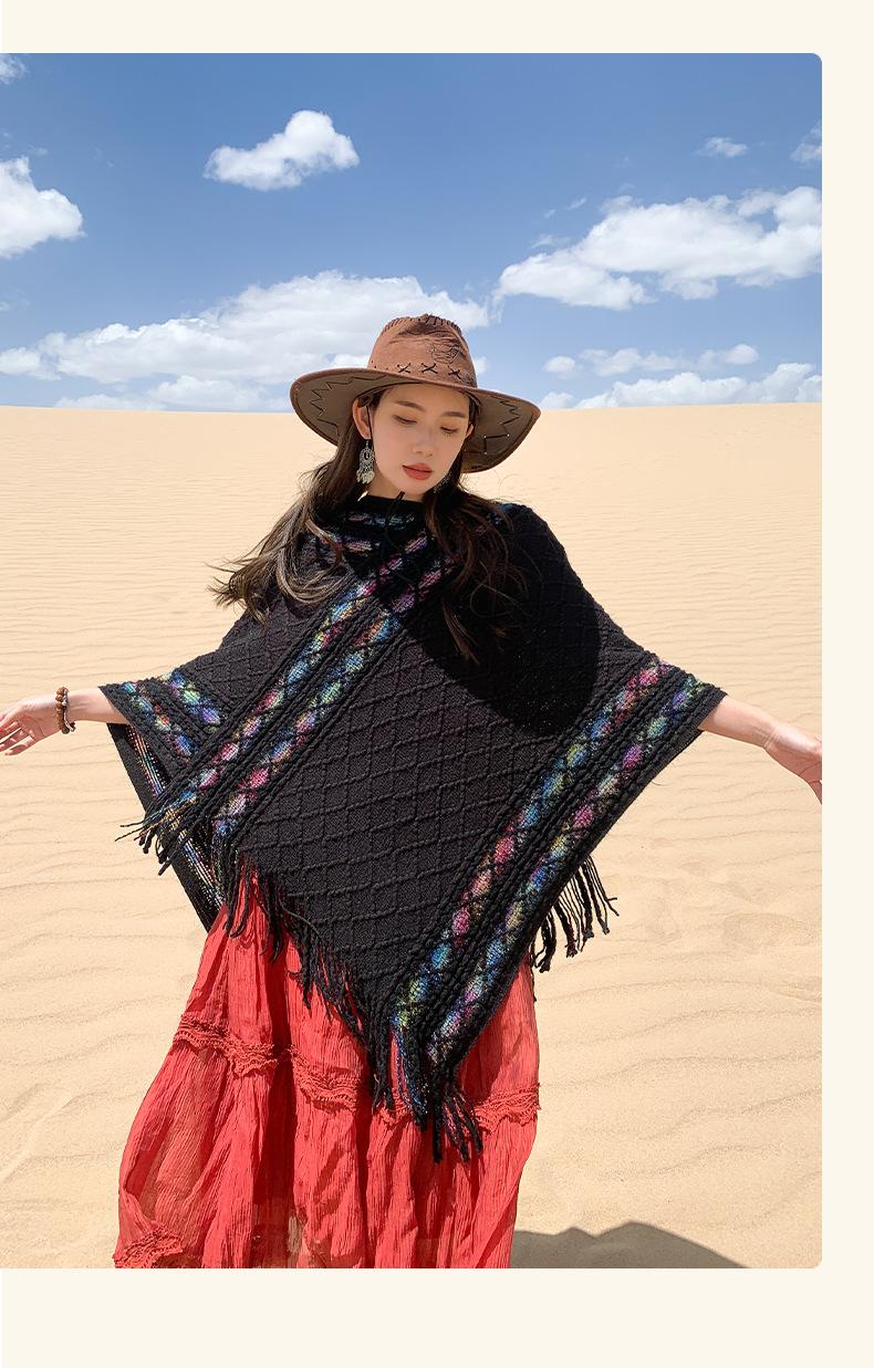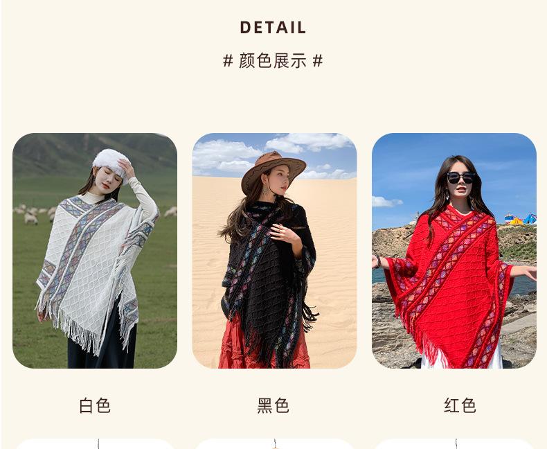 Otoño e Invierno nuevo chal de estilo étnico suéter de punto para mujer chal cálido engrosado viaje a Xizang capa con borlas ropa exterior