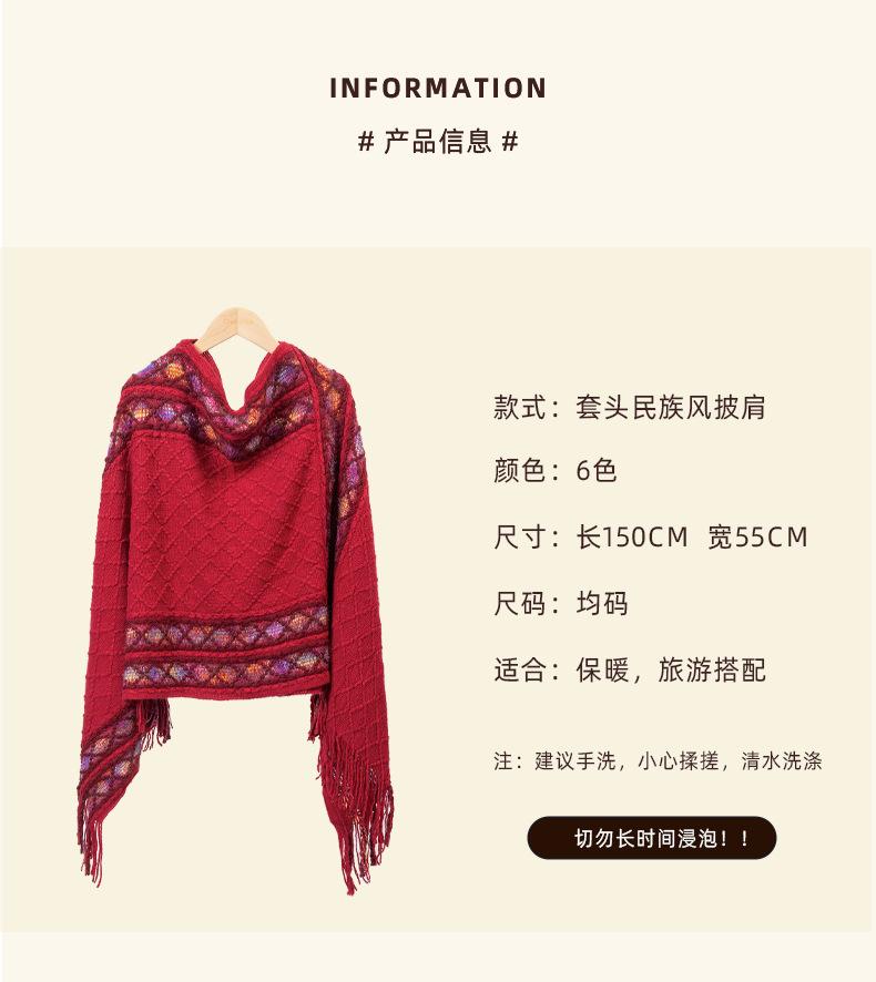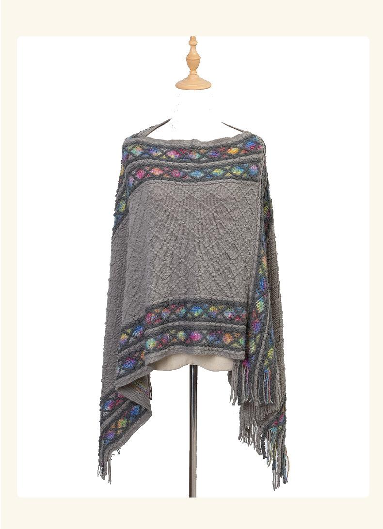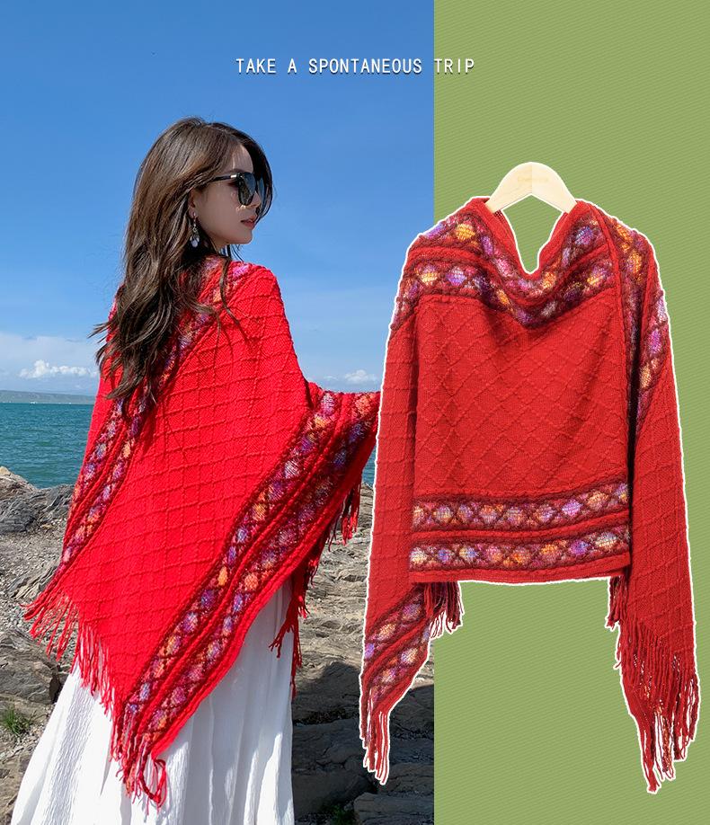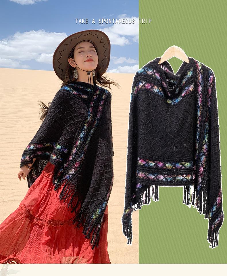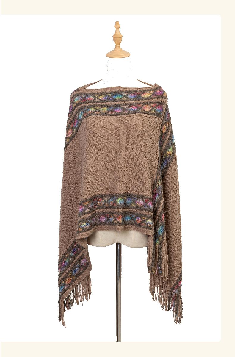 Otoño e Invierno nuevo chal de estilo étnico suéter de punto para mujer chal cálido engrosado viaje a Xizang capa con borlas ropa exterior