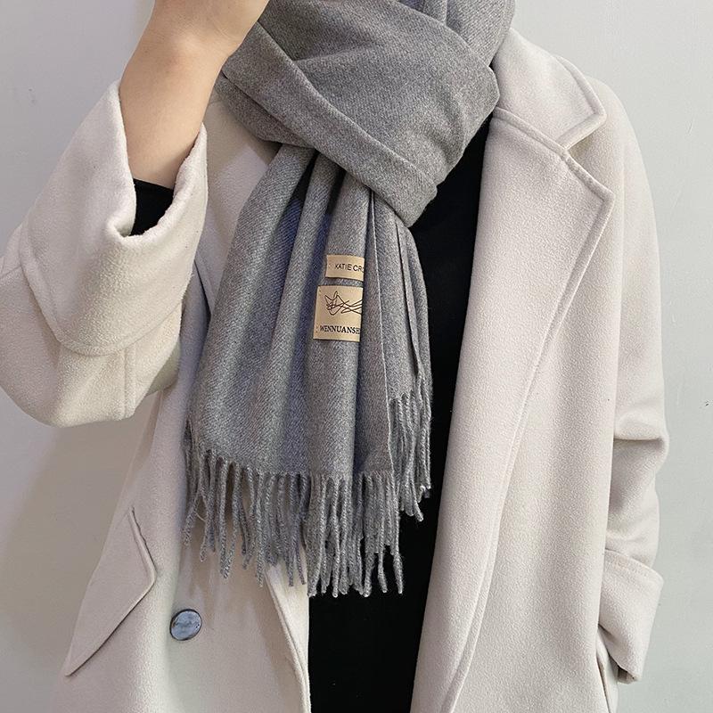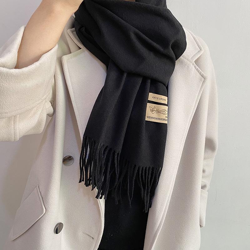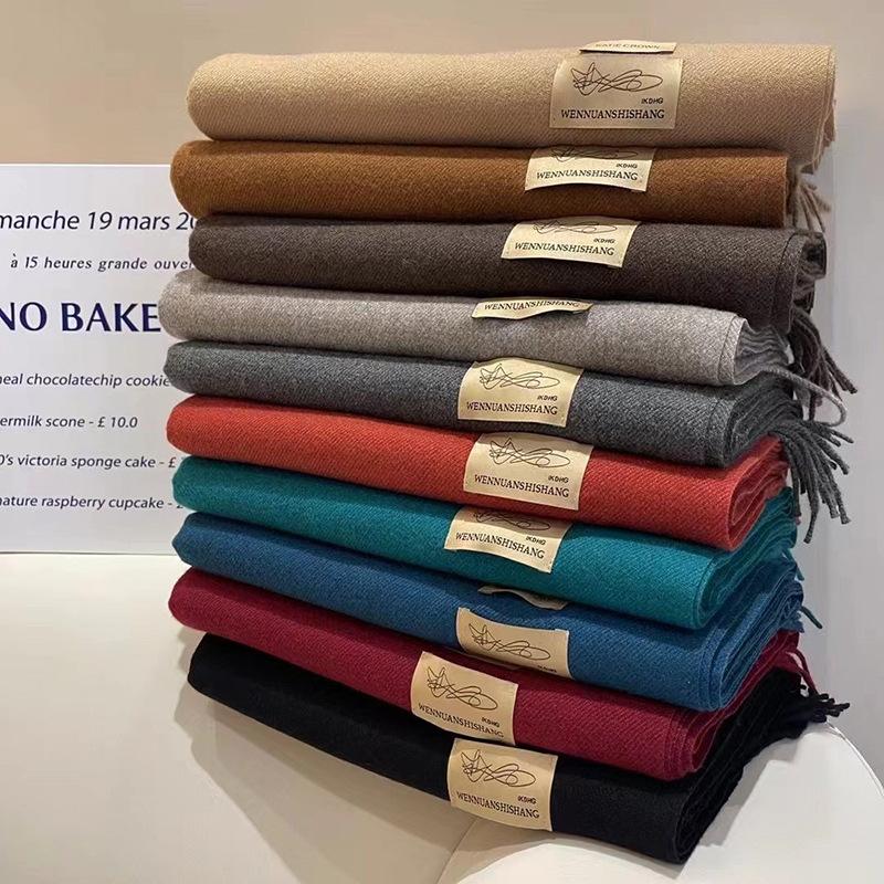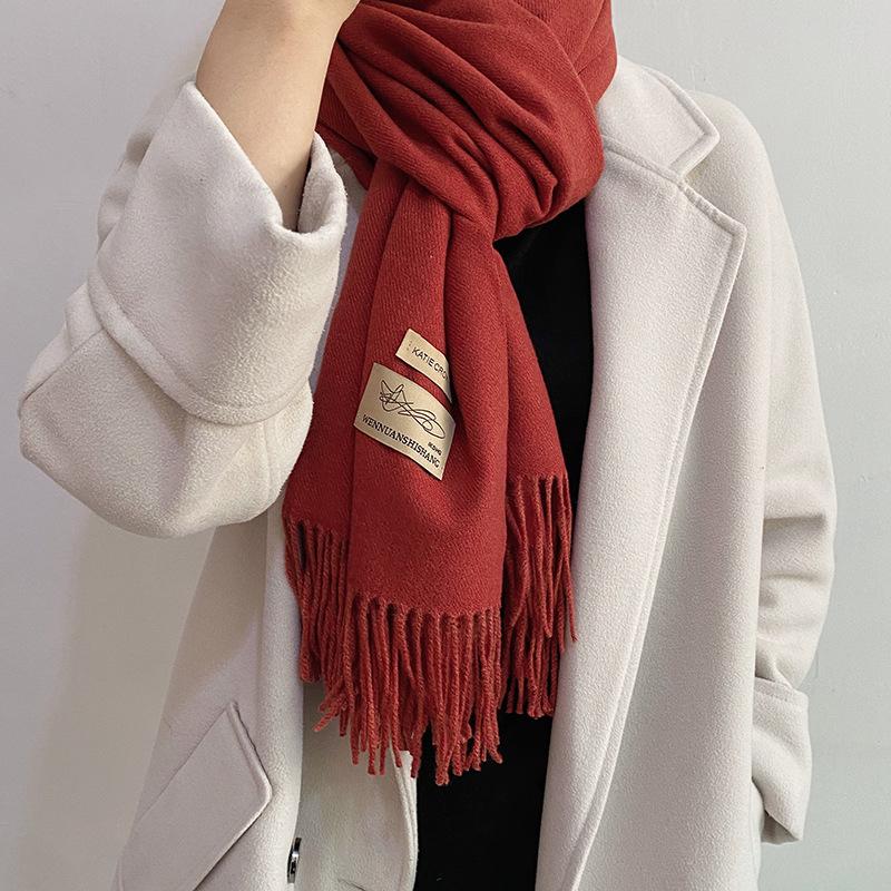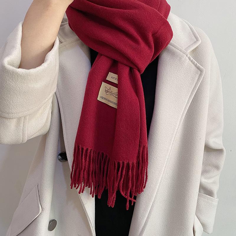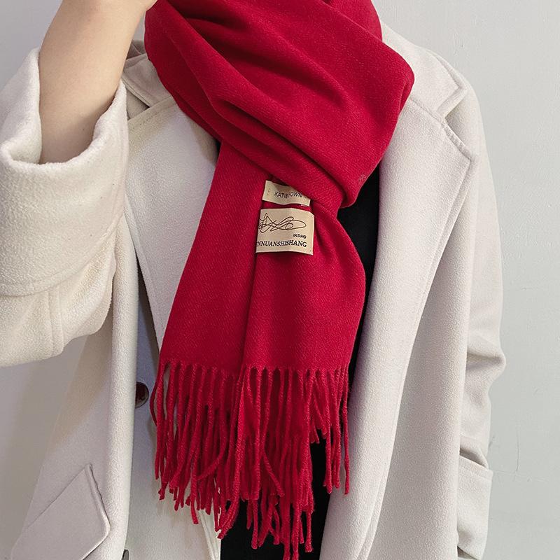 Bufanda de cachemira unisex Otoño/Invierno Nueva reunión anual Bufanda roja Chal de cachemira de imitación Bufanda monocromática Fábrica