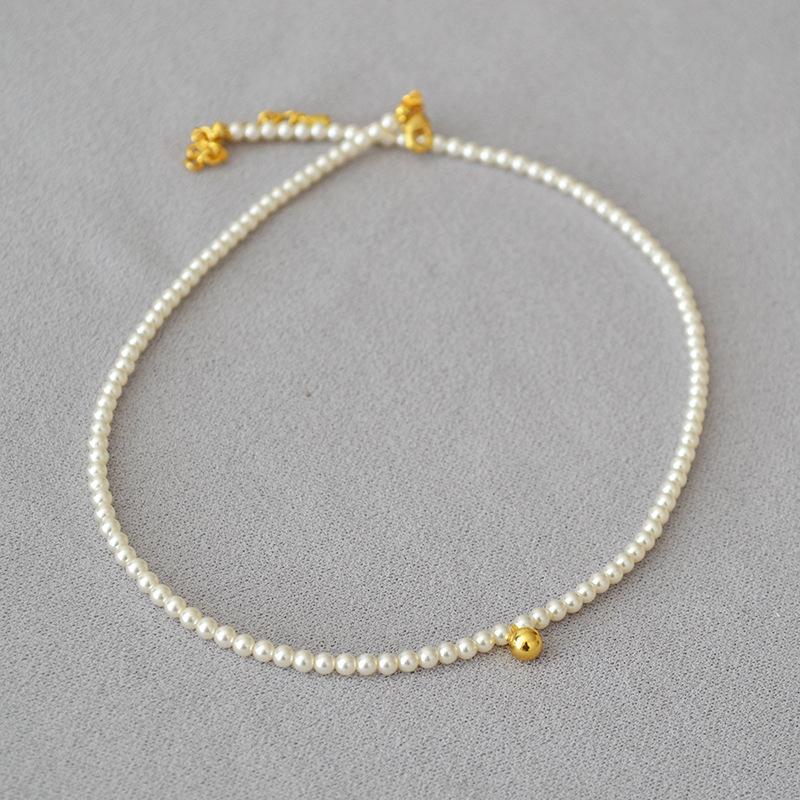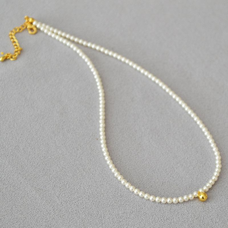 Elegante y Sencillo Collar de Perlas de Imitación de Cristal, Pequeñas Cuentas Doradas, Delicado para Ropa de Trabajo Diario, Cadena para Clavícula para Mujer