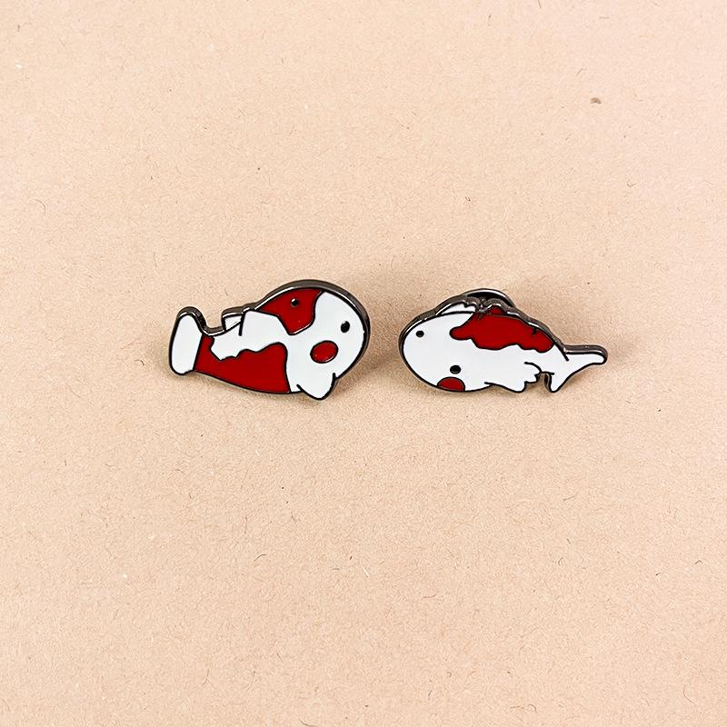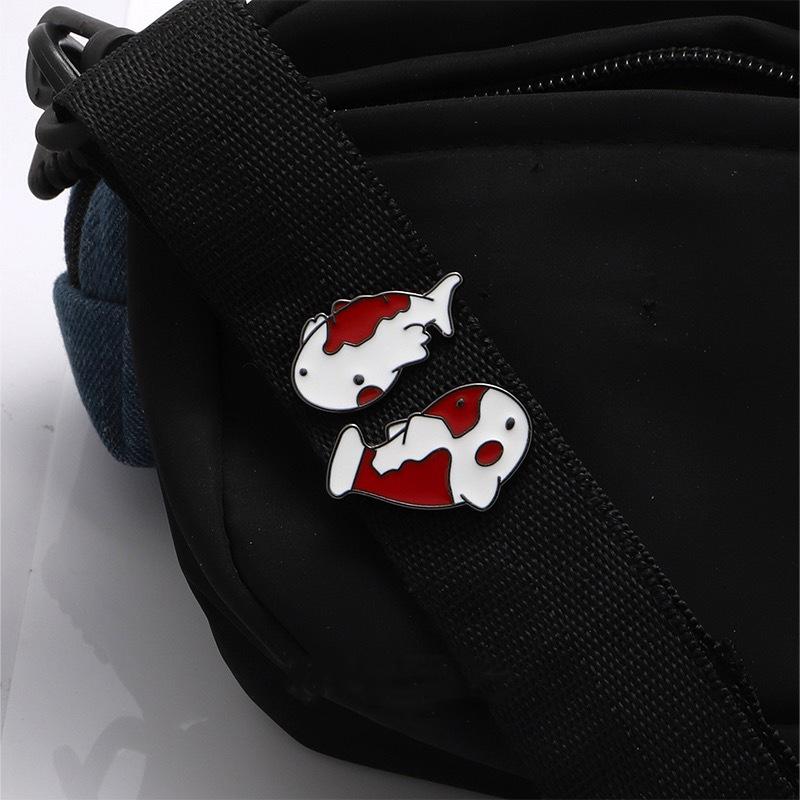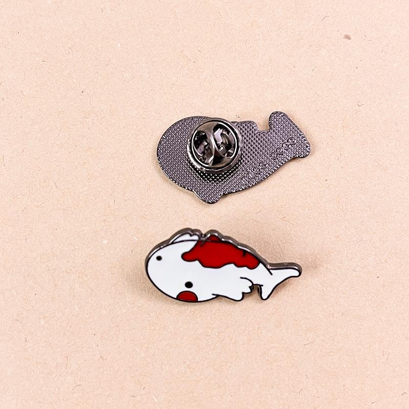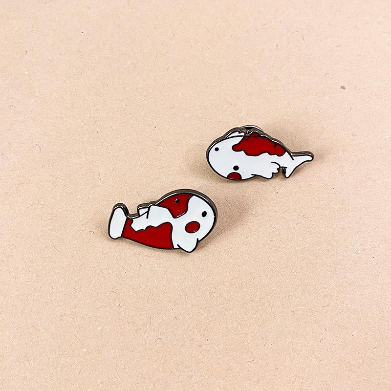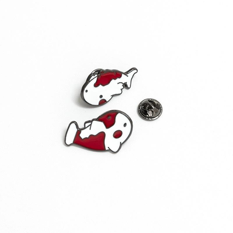 Broche de Carpa Koi Pequeña de la Suerte Linda de Dibujos Animados Insignias de Metal Creativas para Hombre y Mujer Pines para Decoración de Ropa de Pareja