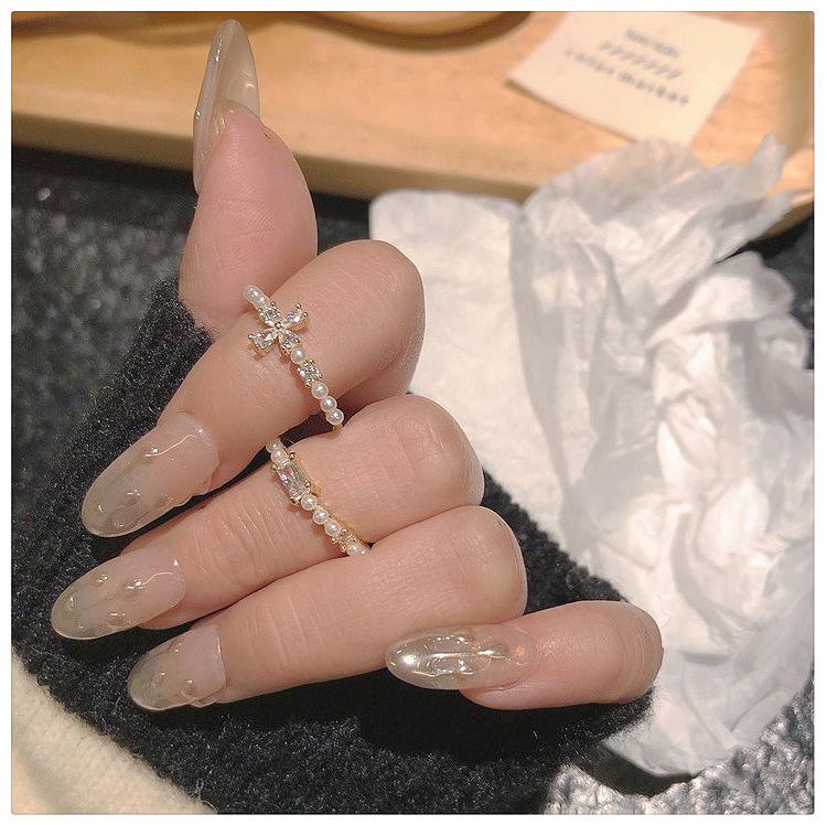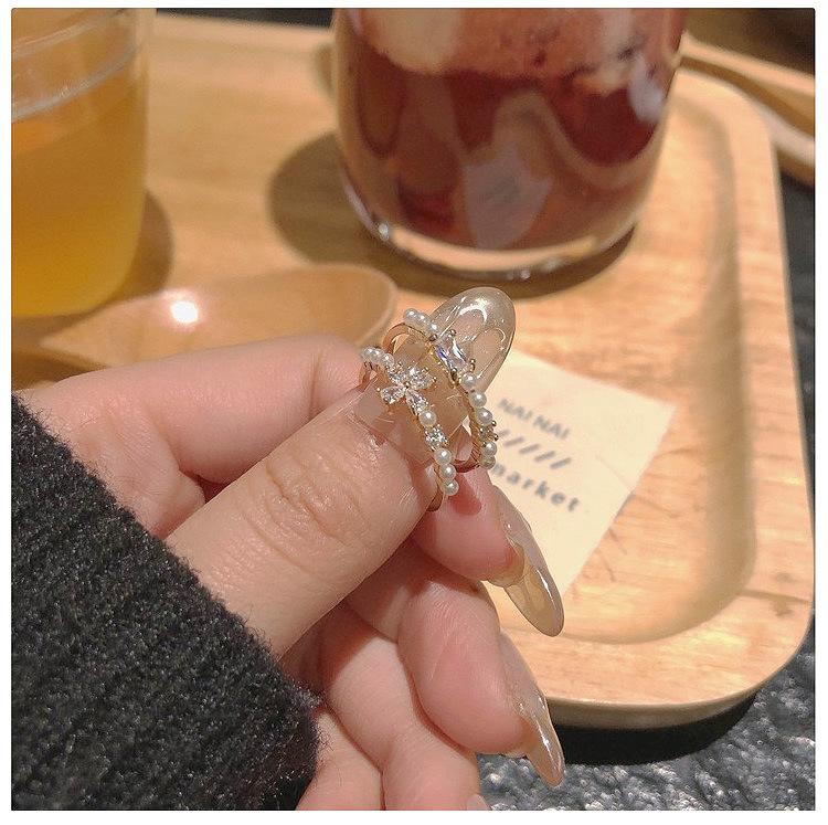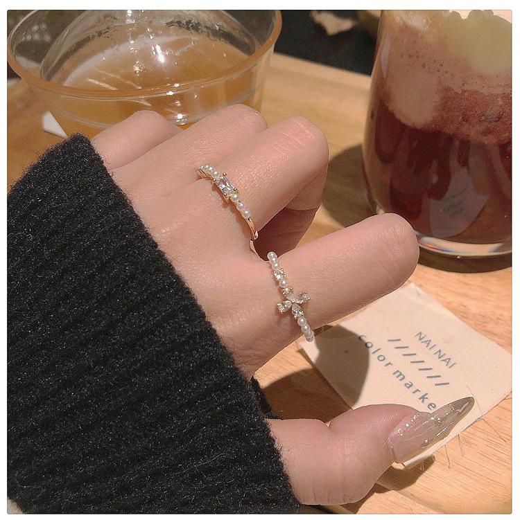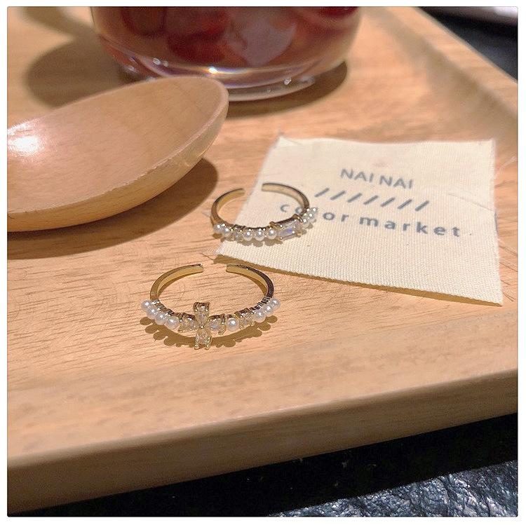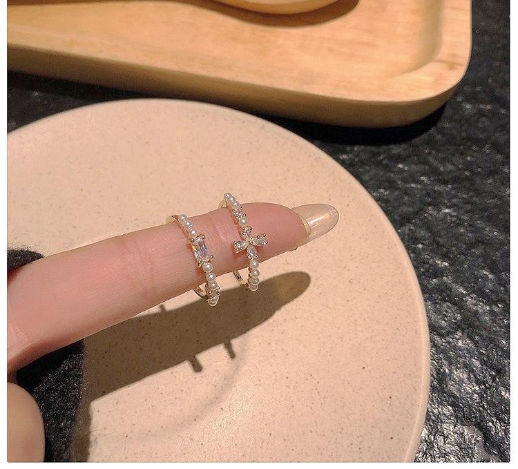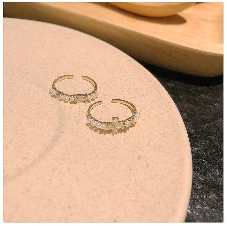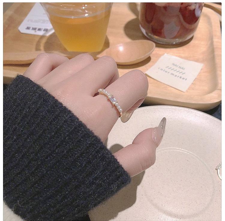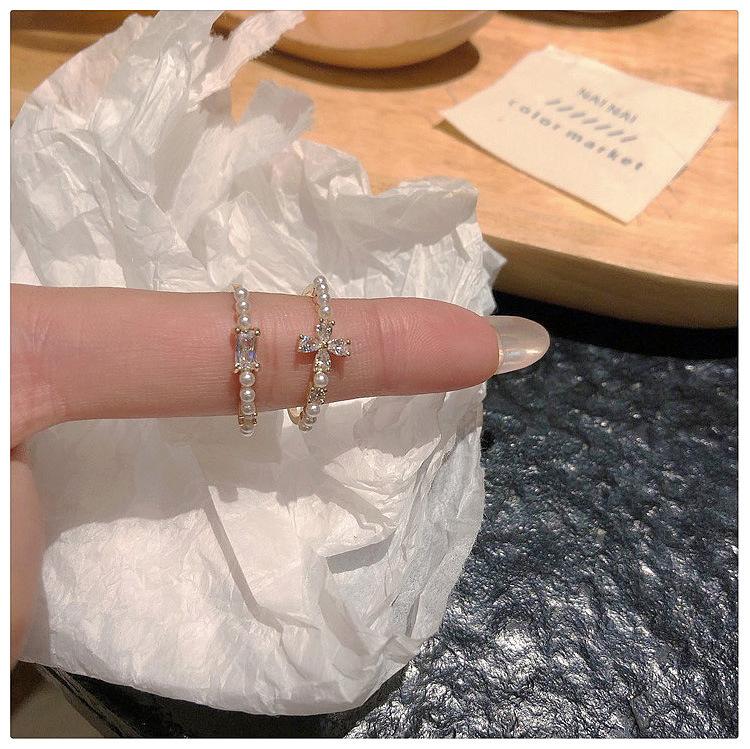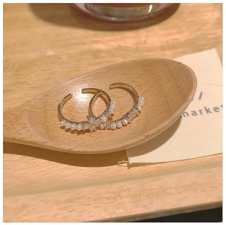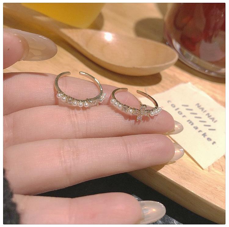 Corea del Sur Lujo Ligero Perla Zircón Anillo Abierto Ajustable Moda para Mujer Anillo con Sentido de Alta Gama Anillo de Dedo Versátil Celebridad de Internet