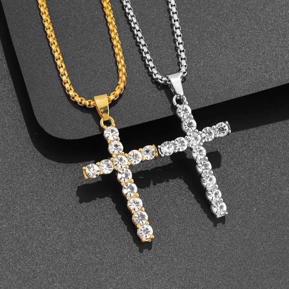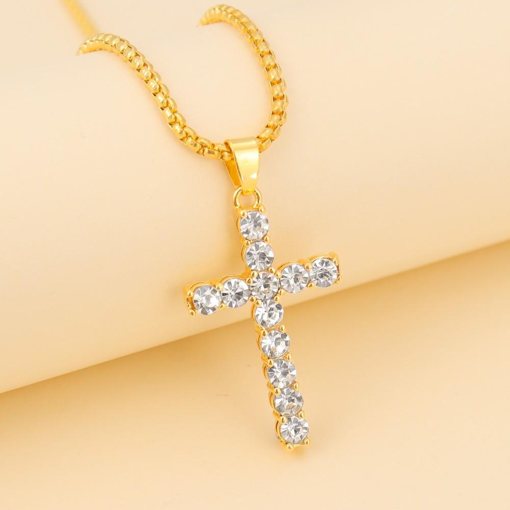 TEMU - Collar con colgante de cruz de circonita con incrustaciones de oro chapado al vacío para hombre, estilo hip hop, gran oferta