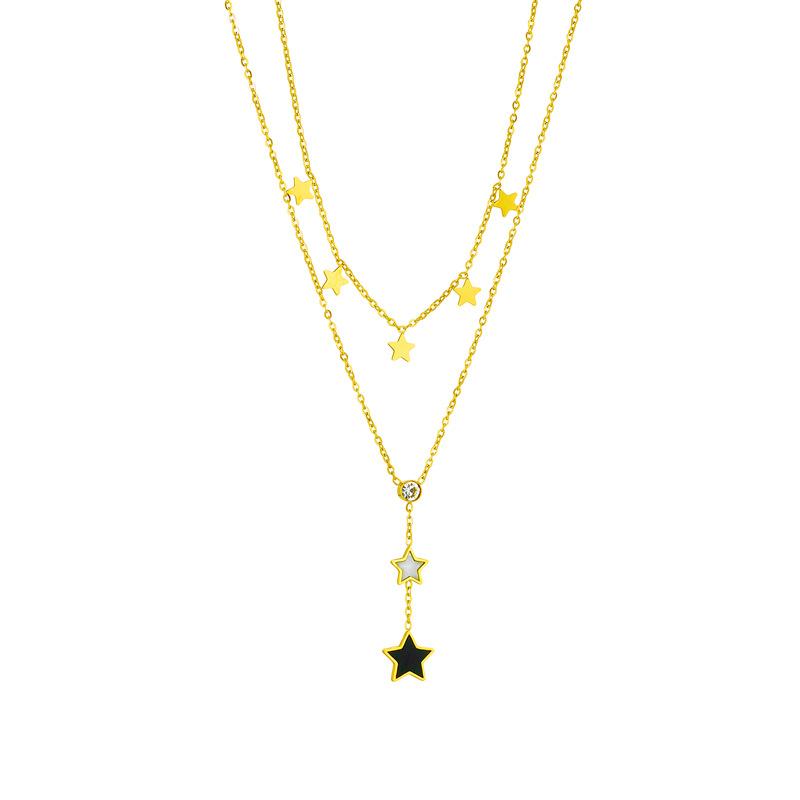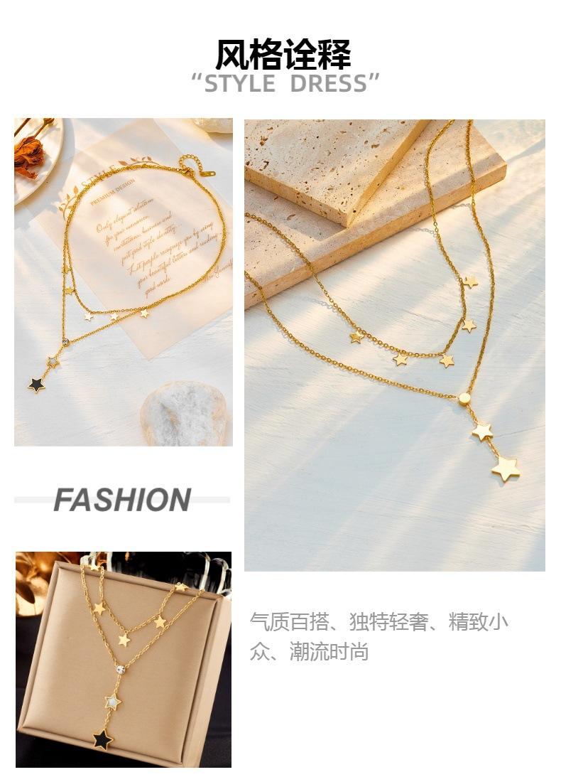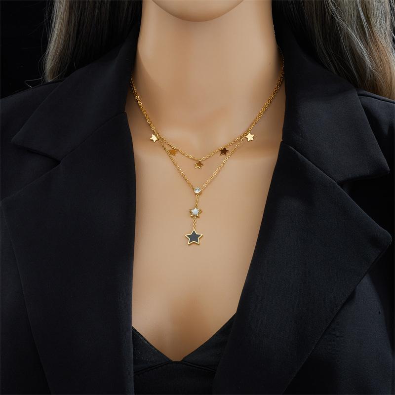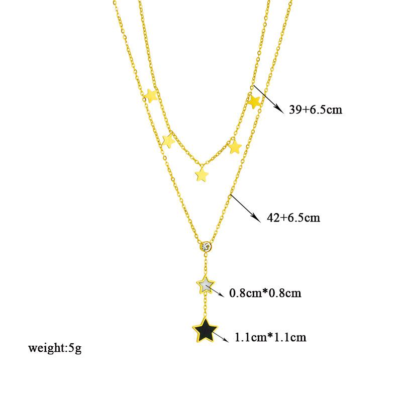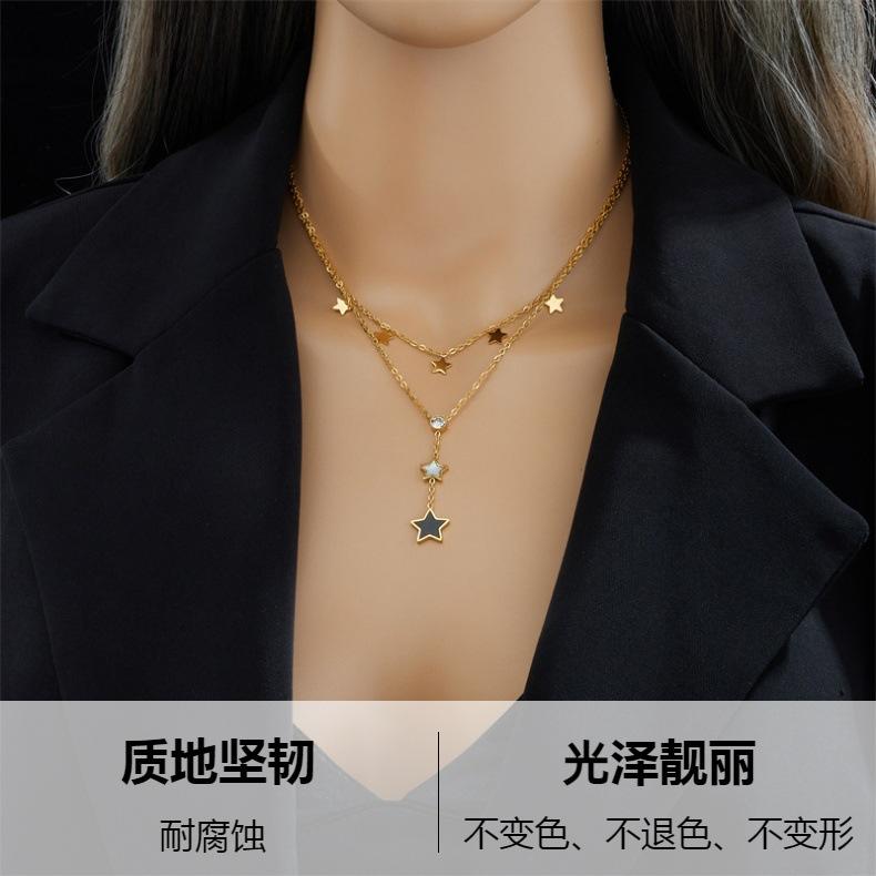 Collar de Acero de Titanio Versátil con Colgante de Borla de Diamante de Estrella de Cinco Puntas de Doble Capa Estilo Coreano Blanco y Negro Joyería para Clavícula Cadena para Clavícula
