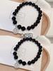 Pulsera para pareja estilo retro pulsera de cuentas de obsidiana diseño nicho ins simple pulsera de estudiante para novias femenina