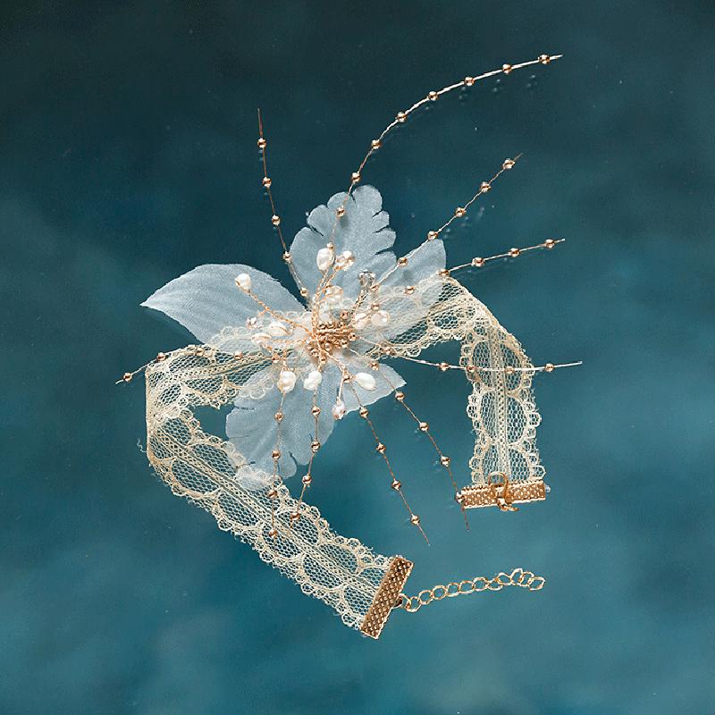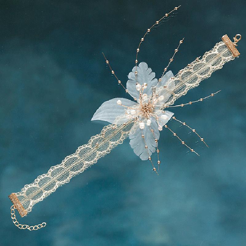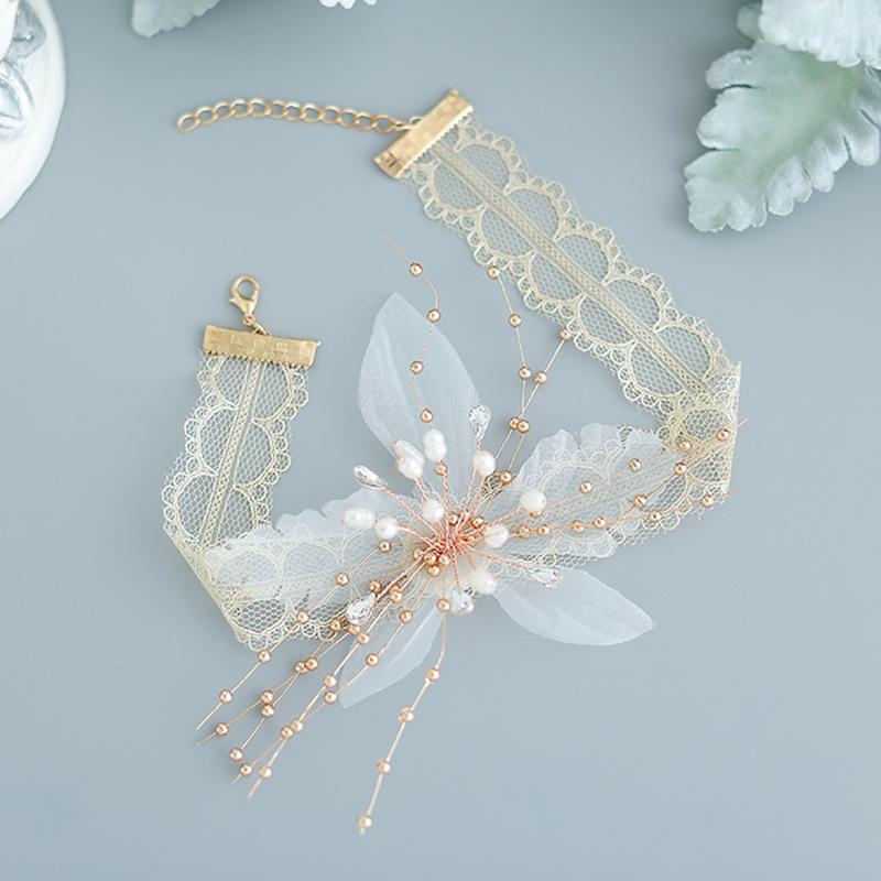 Accesorios de Boda para Novia Coreana Encaje Hecho a Mano Diamante Flor Collar Gargantilla Diario Estilo Coreano