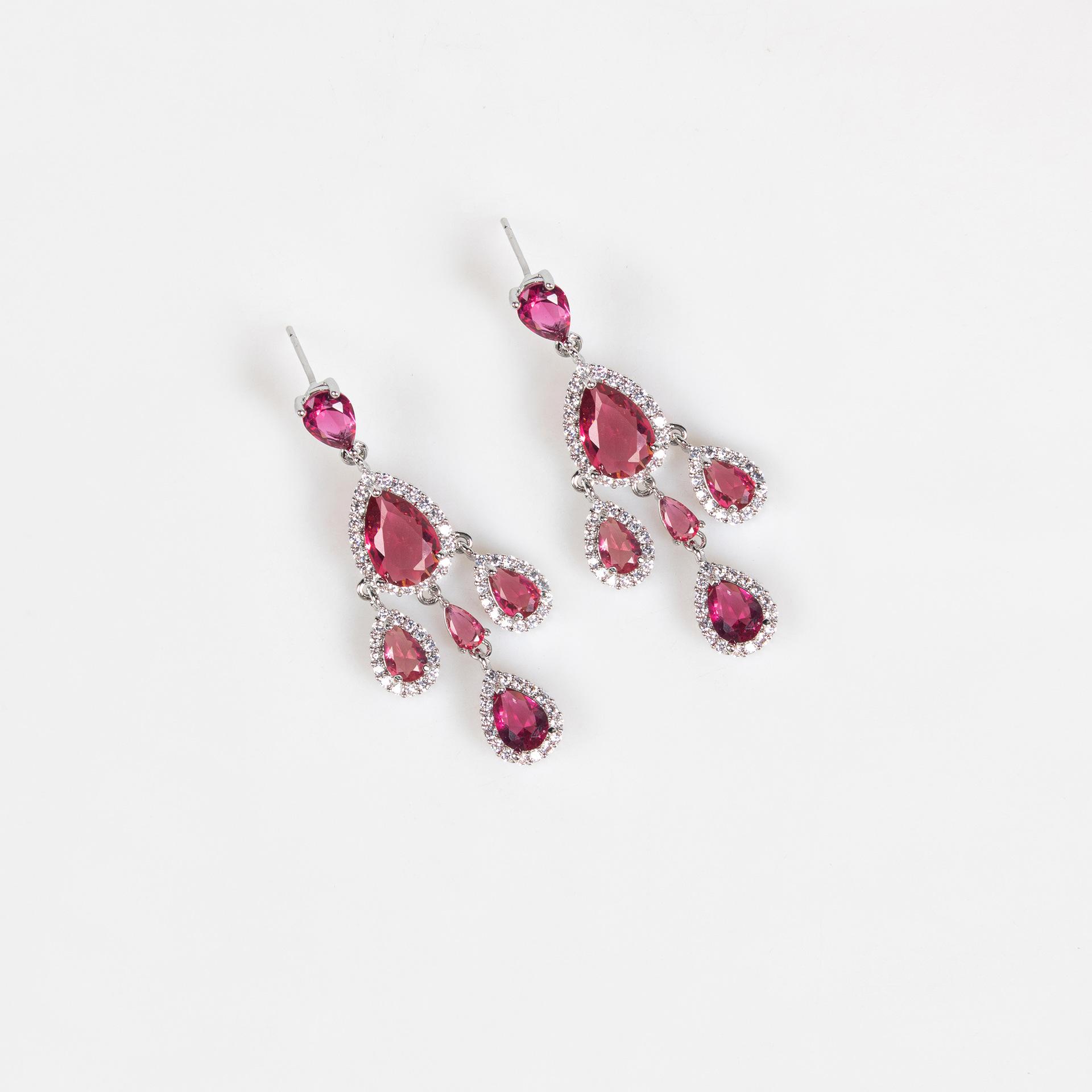 Joyería nupcial, collar largo con gotas de agua grandes, pendientes, joyería de boda, accesorios de hilo de boda, cinco colores con borde cruzado