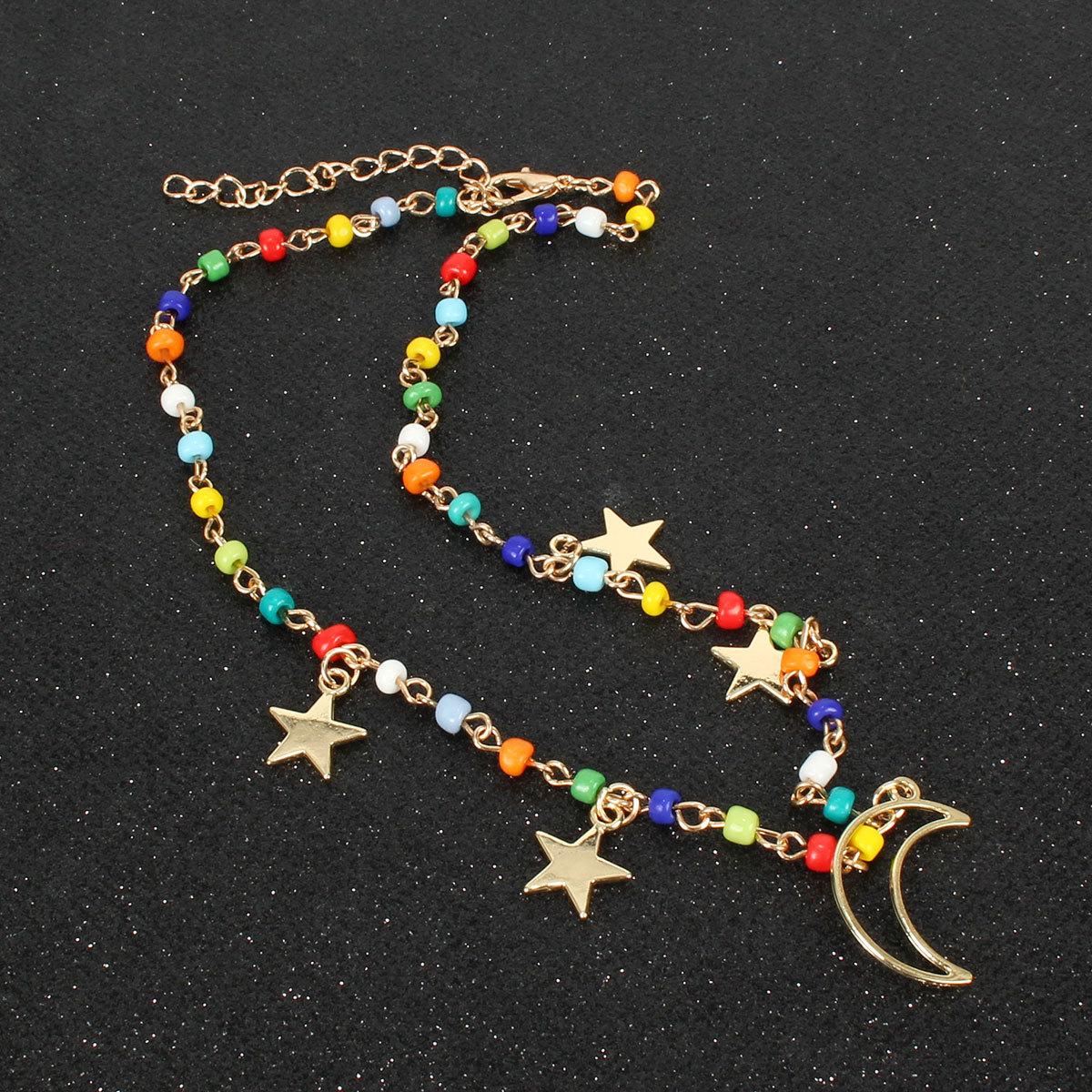 Collar con colgante de luna y cuentas de colores estrellados de estilo europeo y americano, joyería transfronteriza, personalidad sencilla, para mujer, 12750