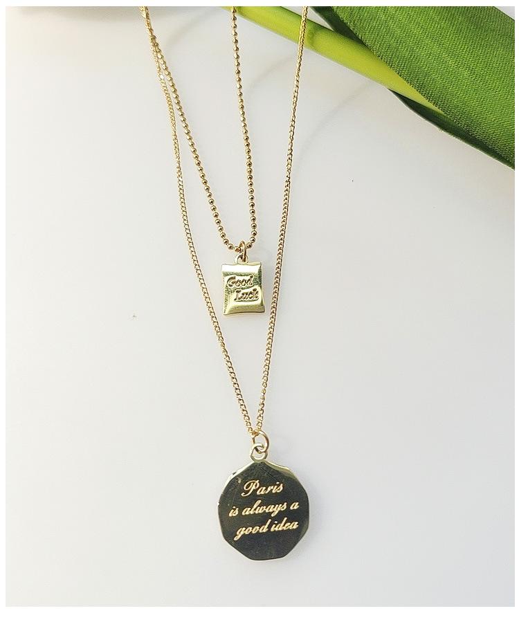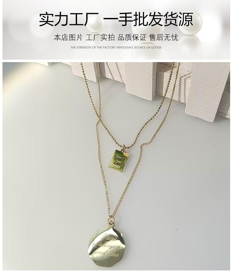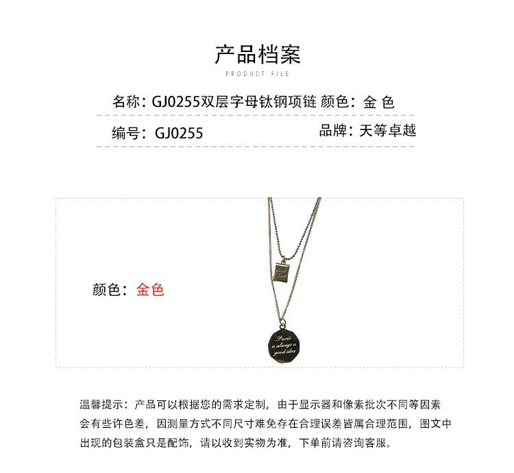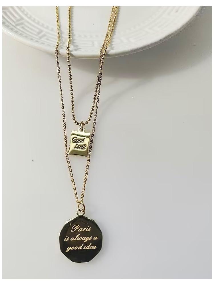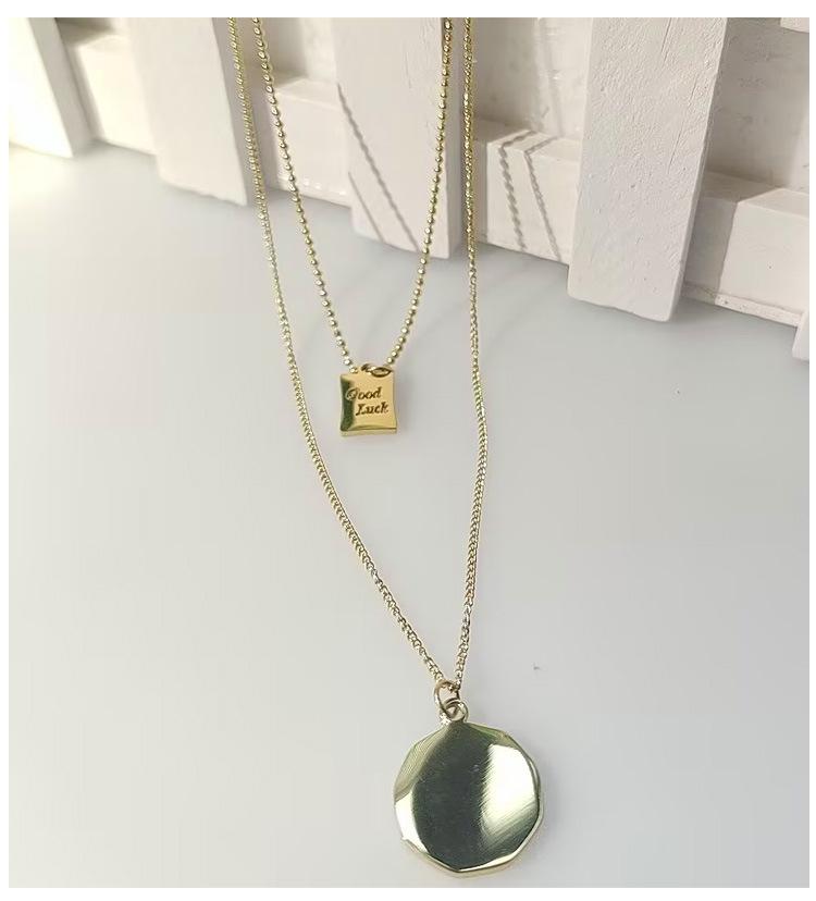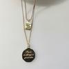 Collar con letra de la suerte de acero de titanio de doble capa, cadena de clavícula femenina, diseño de nicho, estilo frío, collar de temperamento simple.