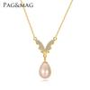 Collar PAG&MAG S925 con diseño de V grande y colgante de perla de circonita 3A, joyería femenina sencilla, envío de una pieza