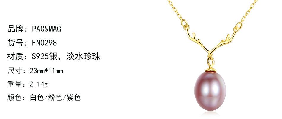 Collar con colgante de plata S925 Pag&Mag para mujer, Diseño fresco de asta, Joyería de perla de agua dulce, Venta caliente transfronteriza