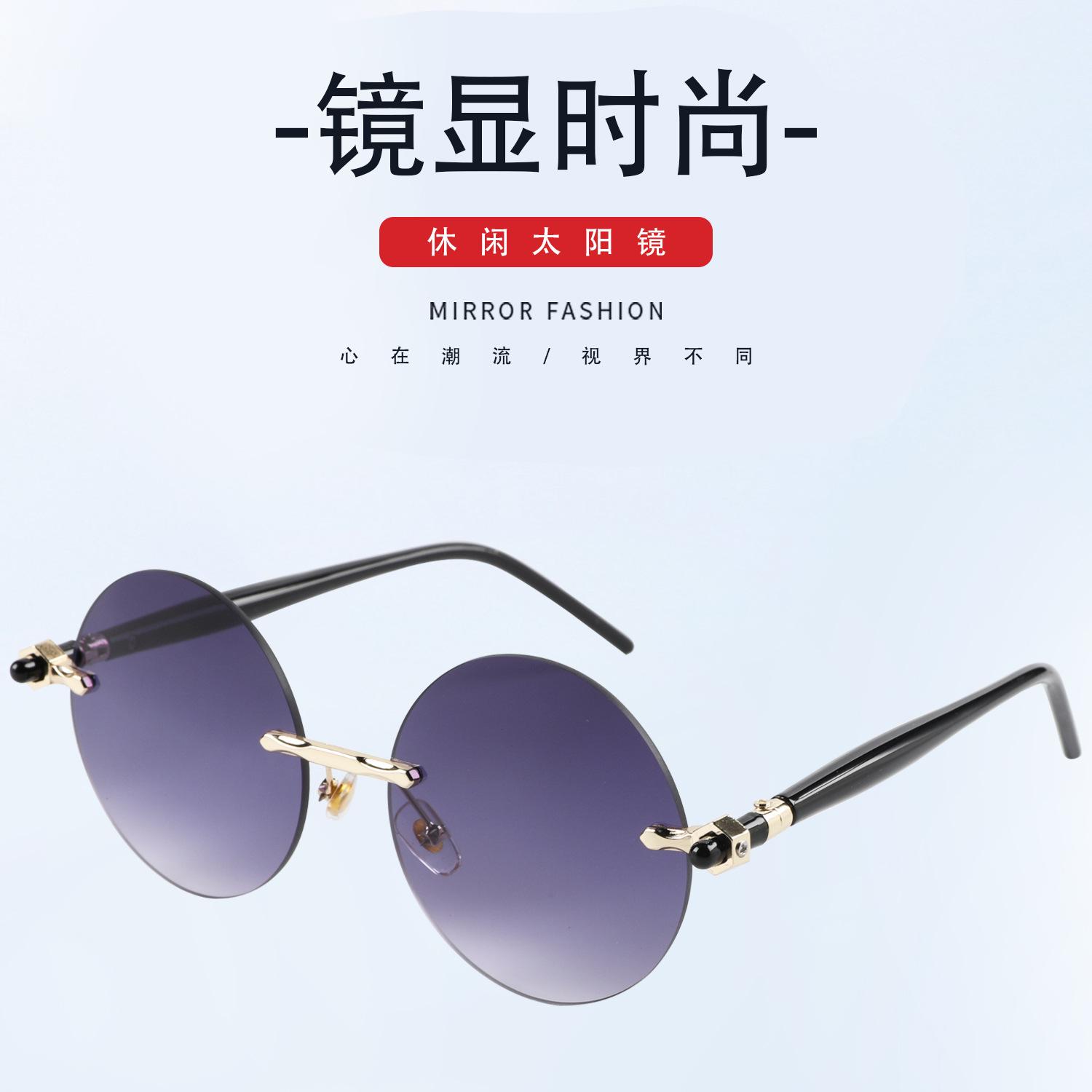 Nuevas gafas de sol con montura redonda, sin marco y borde cortado para mujer, gafas de sol para fiesta en la playa transfronterizas, gafas retro de moda