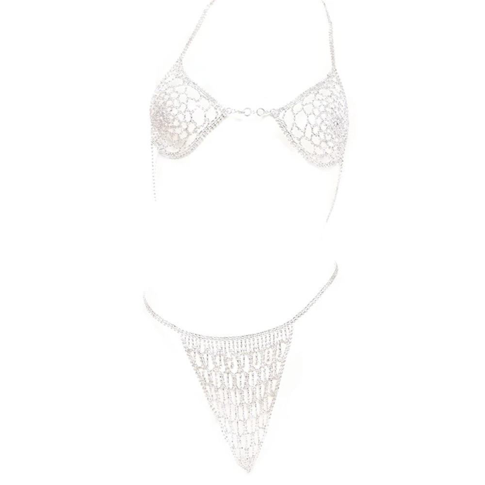 Conjunto de bikini de playa con cadena para el pecho y diamantes de imitación para discoteca europea y americana transfronteriza, cadena para el cuerpo sexy