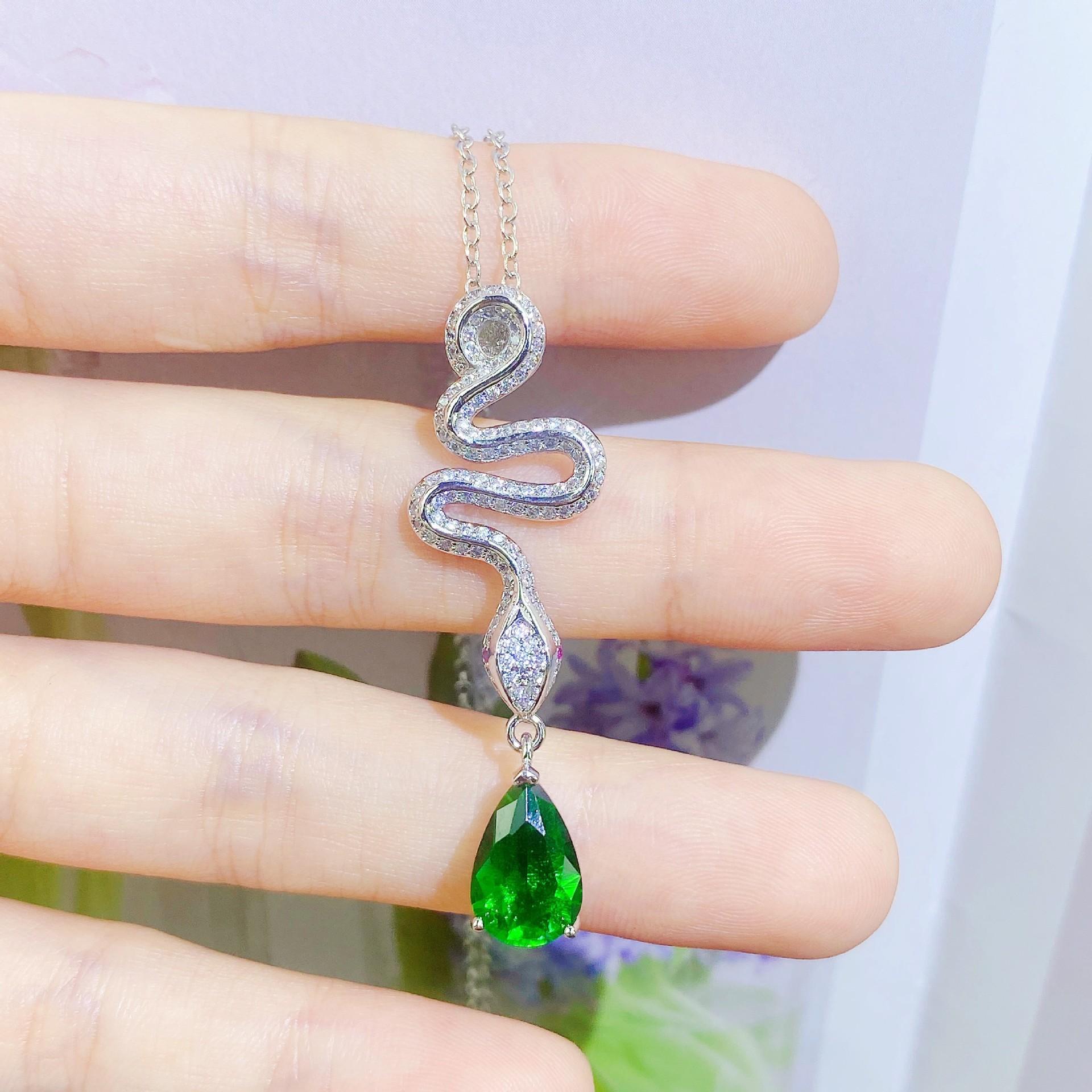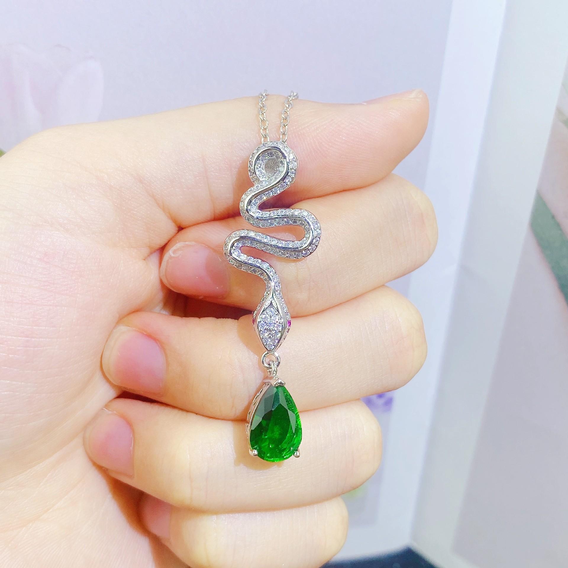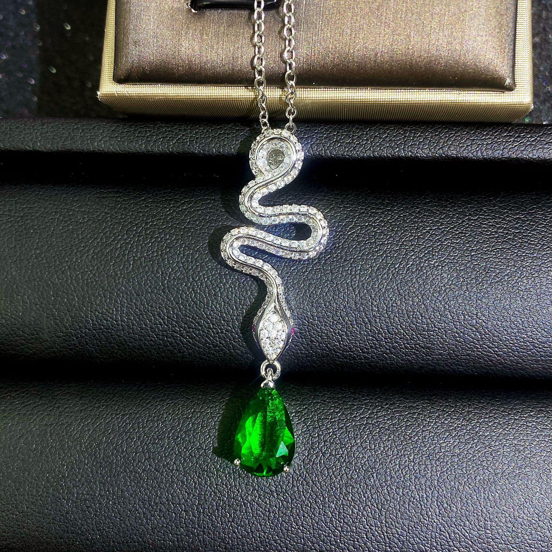 Joyería Gaoding Lingxi, simulación de lengua de serpiente, gota de agua colombiana, colgante de esmeralda Muzo, collar Lingnake