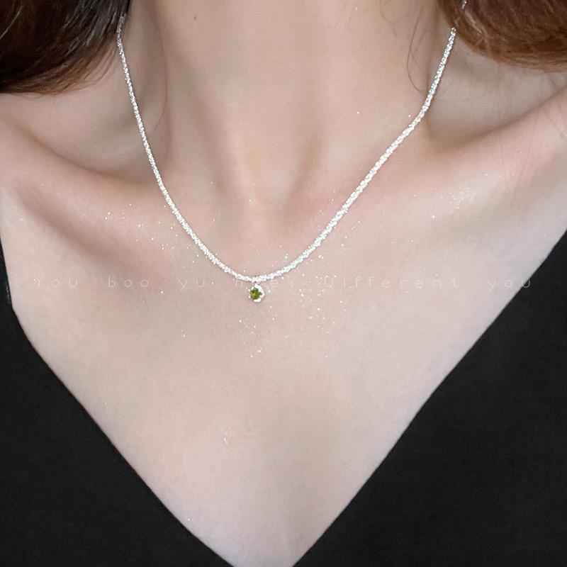Collar Super Flash Stars verde oliva para mujer, exquisito, ligero, de lujo, de alta gama, con cadena de clavícula y diseño de nicho.