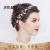 Tocado de flores transfronterizo europeo y americano hecho a mano con malla de perla, banda para el pelo con hojas, accesorios para el cabello para vestido de novia, joyería nupcial al por mayor