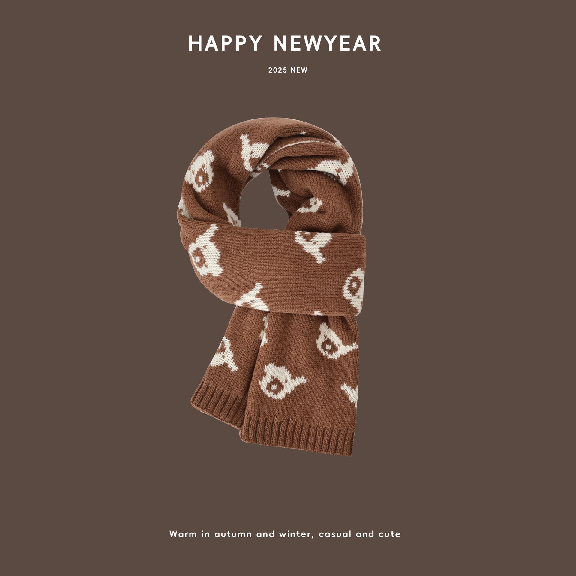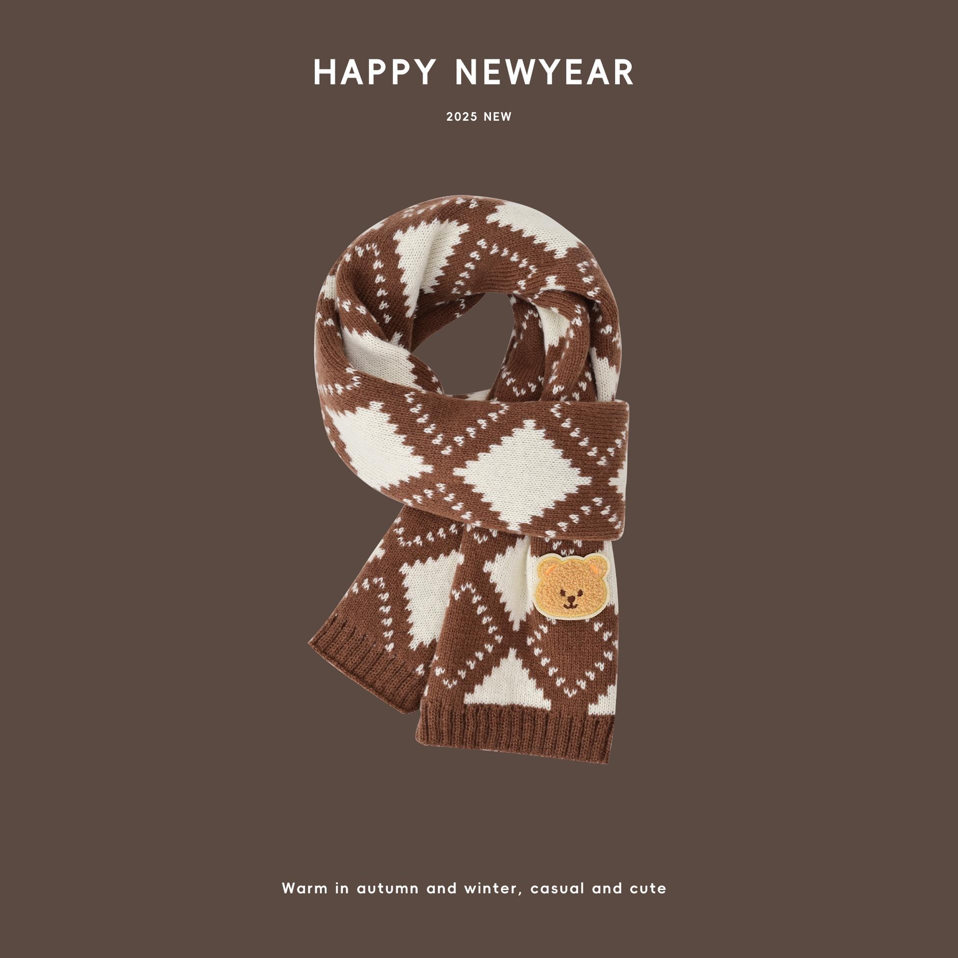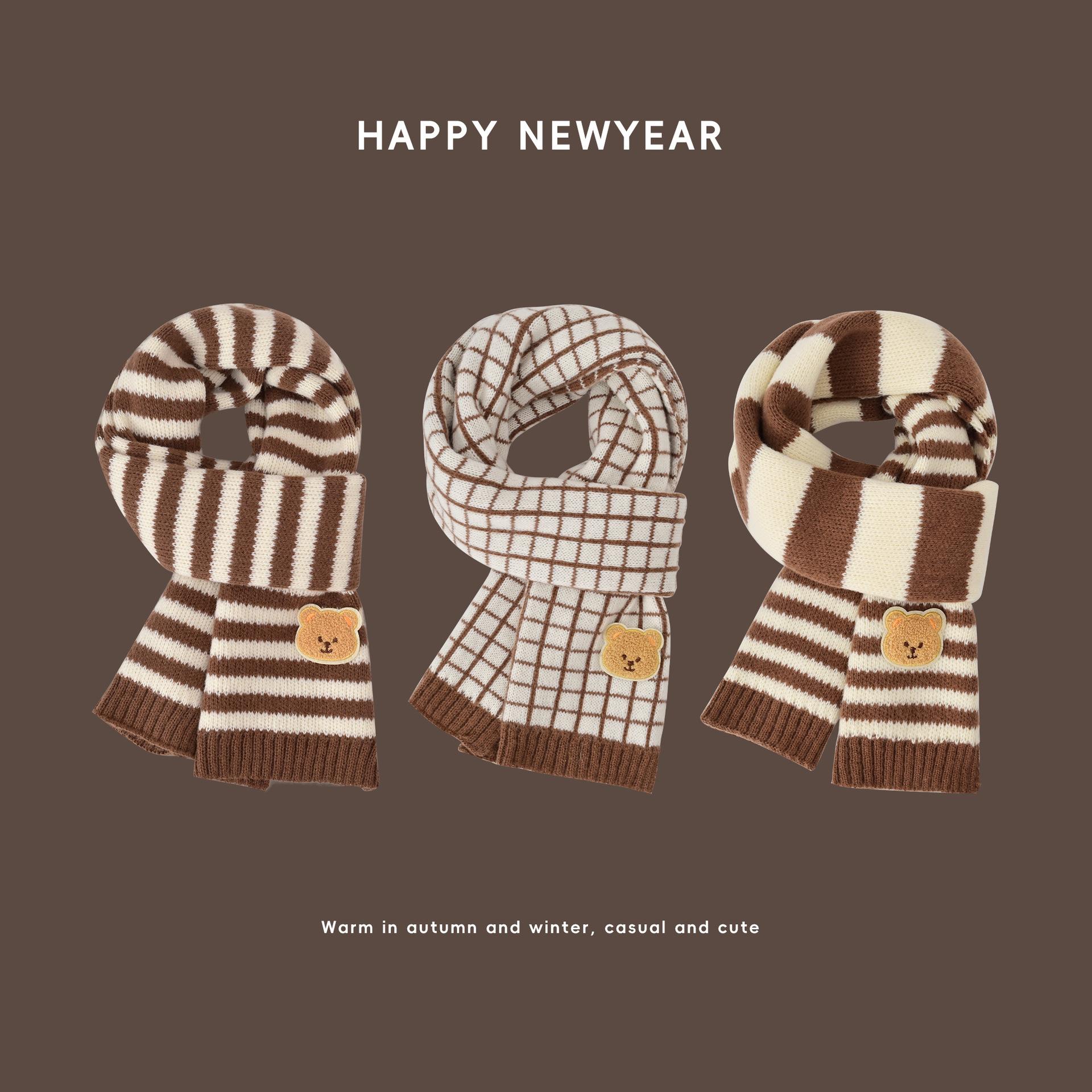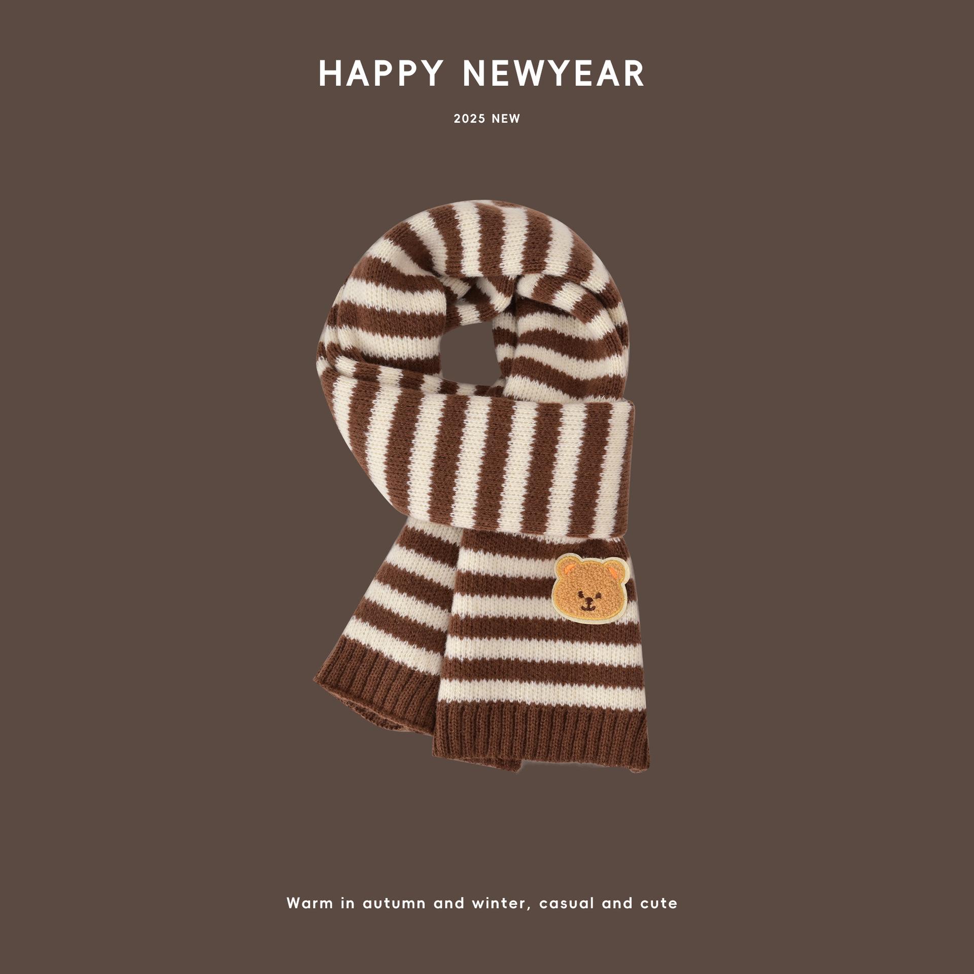 Bufanda de Punto para Niños Otoño e Invierno 2025 Bufanda Cálida para Bebé Estilo Coreano Oso Niños y Niñas Bufanda de Lana de Dibujos Animados