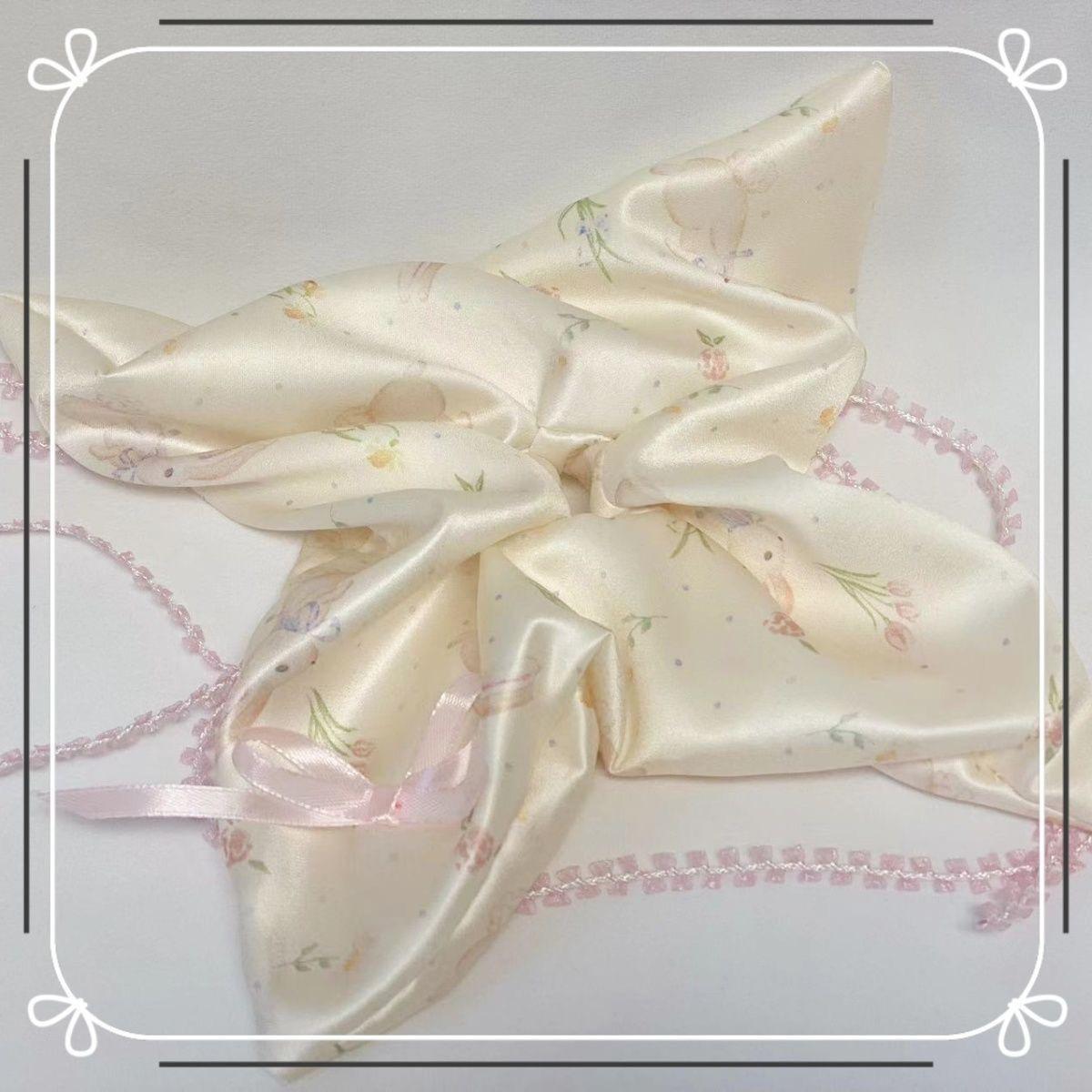 Tulipán conejo hibisco satén de aspecto alto estilo ins lujo ligero pequeña bufanda cuadrada anillo para el cabello lindo ins Super Hada Caliente