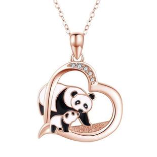 Deseo nuevo colgante de diamante en forma de corazón aleación pintura al óleo tesoro nacional madre e hijo collar de panda te amo por siempre cadena clavicular