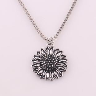 Collar europeo y americano de nueva venta caliente con flor retro girasol, moderno, simple, versátil, cadena larga para suéter, unisex