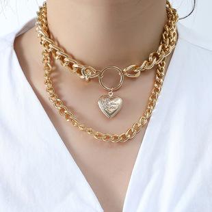 Joyería transfronteriza europea y americana collar con colgante creativo en forma de corazón que se abre para mujer exagerado de doble capa cadena simple collar corto