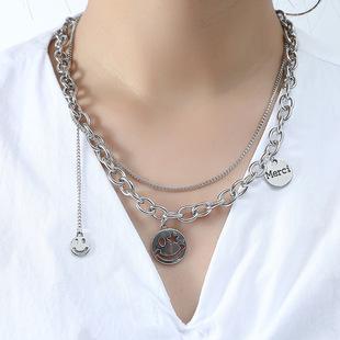 Corea del Sur Dongdaemun nueva cadena de clavícula ins personalidad celebridad de internet estilo frío cara sonriente collar multicapa