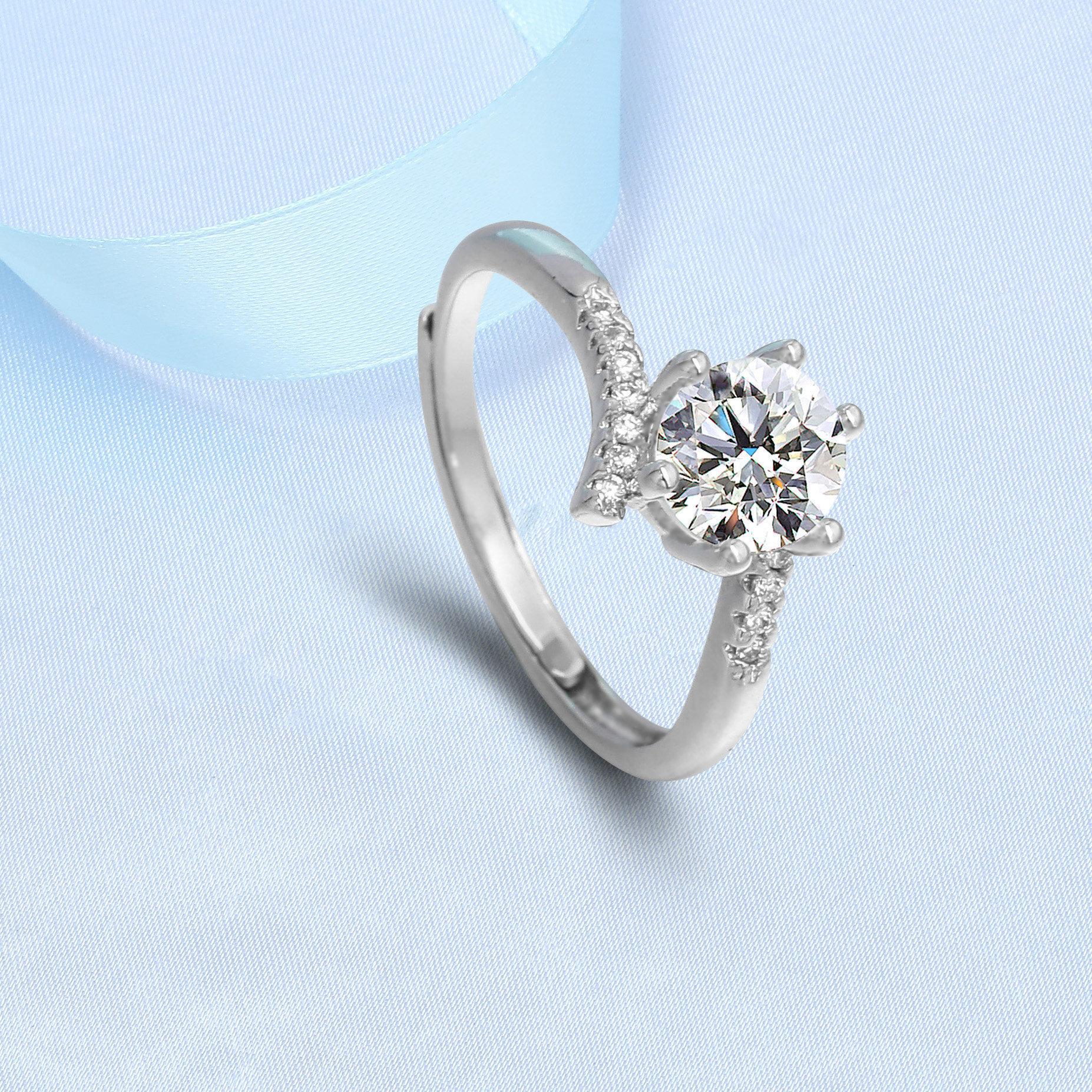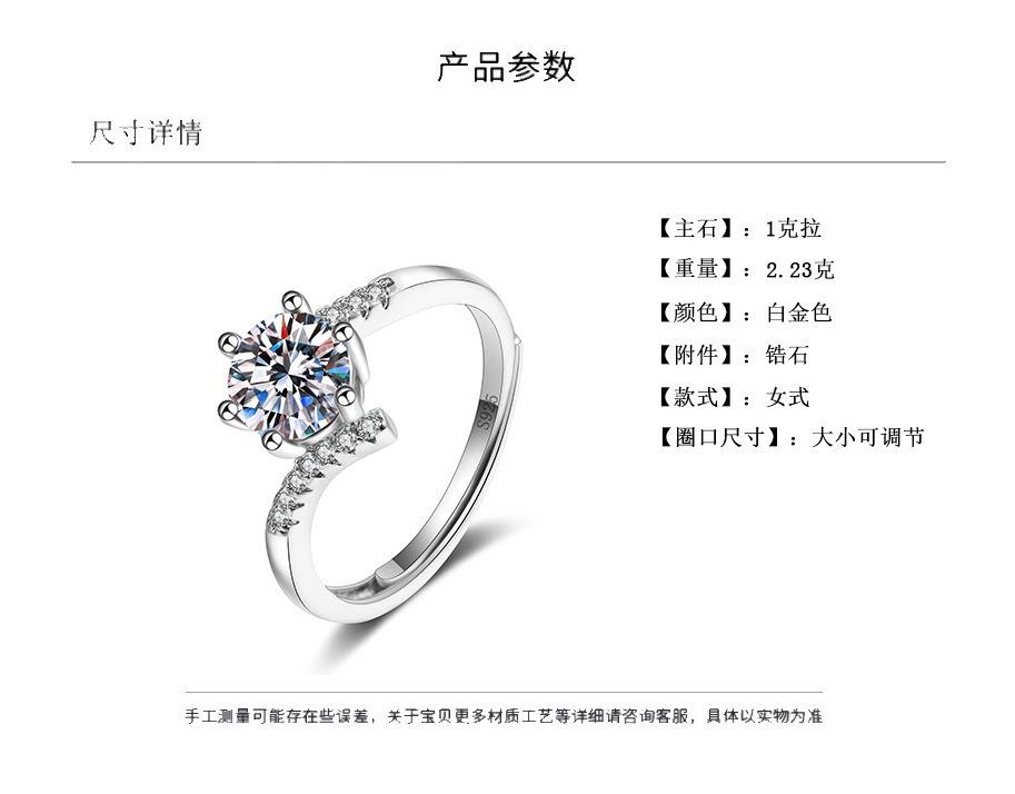 Anillo de plata 925 para mujer, nuevo anillo de diamantes de moissanita de 1 quilate con apertura de pared, venta directa de fábrica