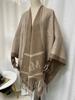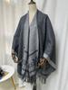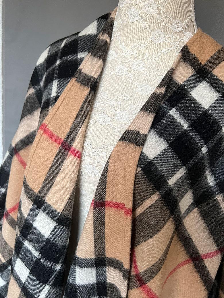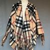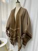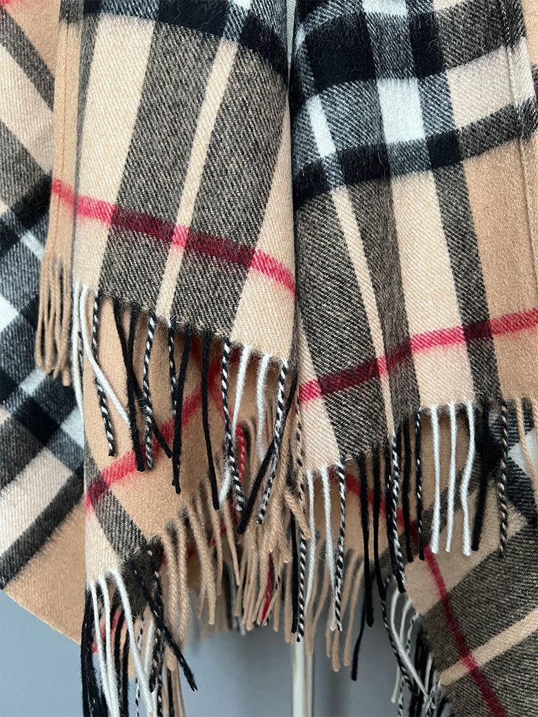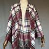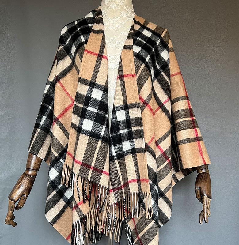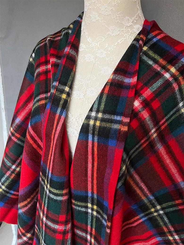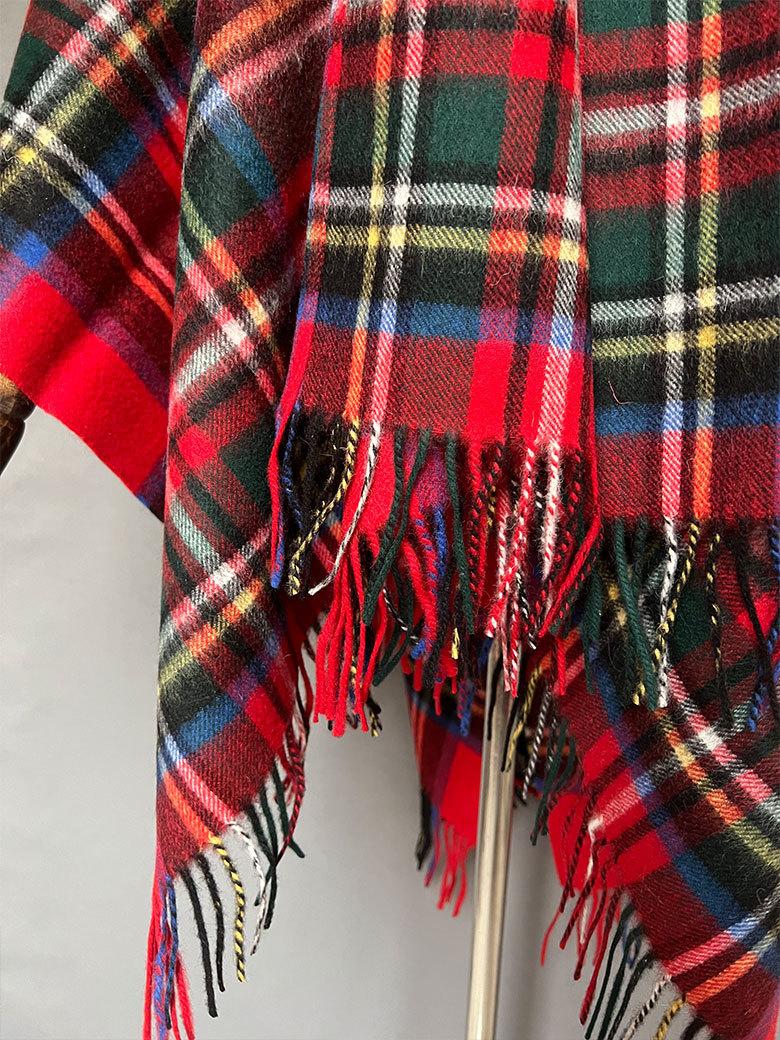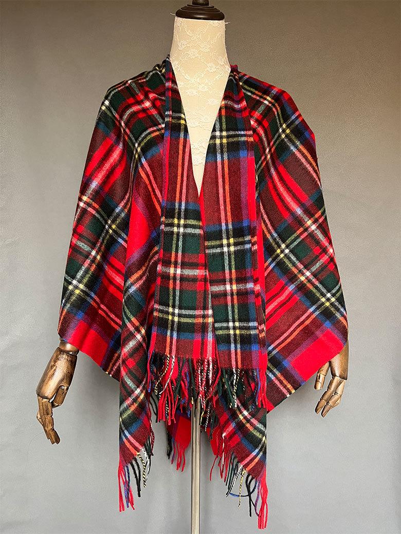RJCC alta calidad a cuadros Otoño e Invierno Lana de Cordero a cuadros Poncho Cálido de Orejas Largas para Mujer Chal con Flecos Grueso
