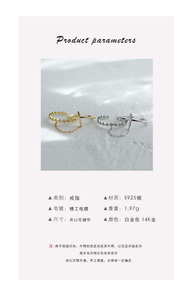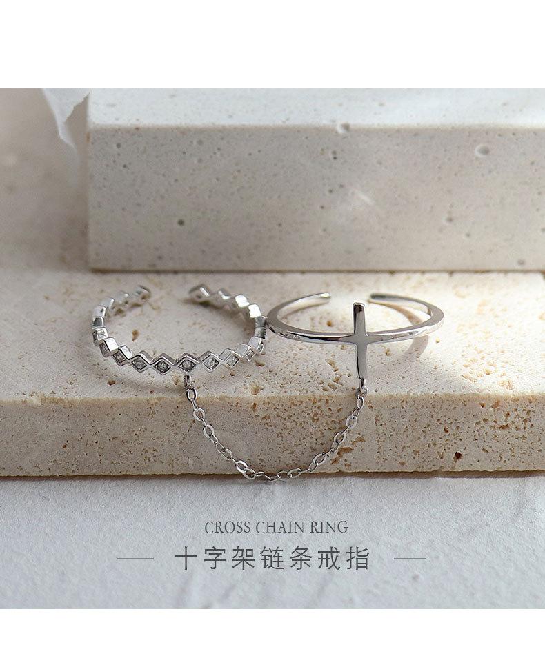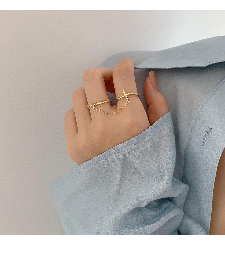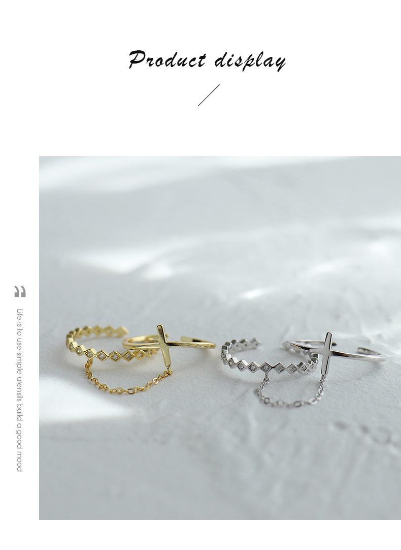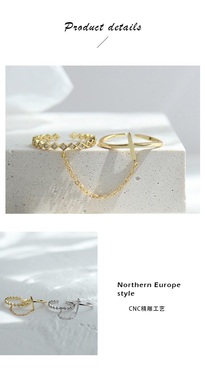 Anillo abierto cruzado simple de moda para mujer, de plata pura, popular en Internet, estilo frío, anillo de cadena para dedo, estilo japonés y coreano, anillo de moda.