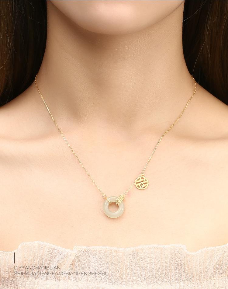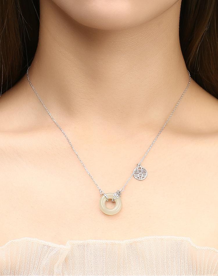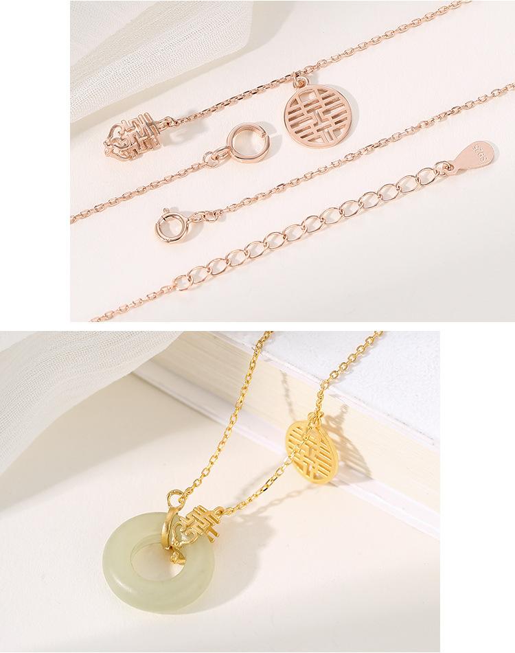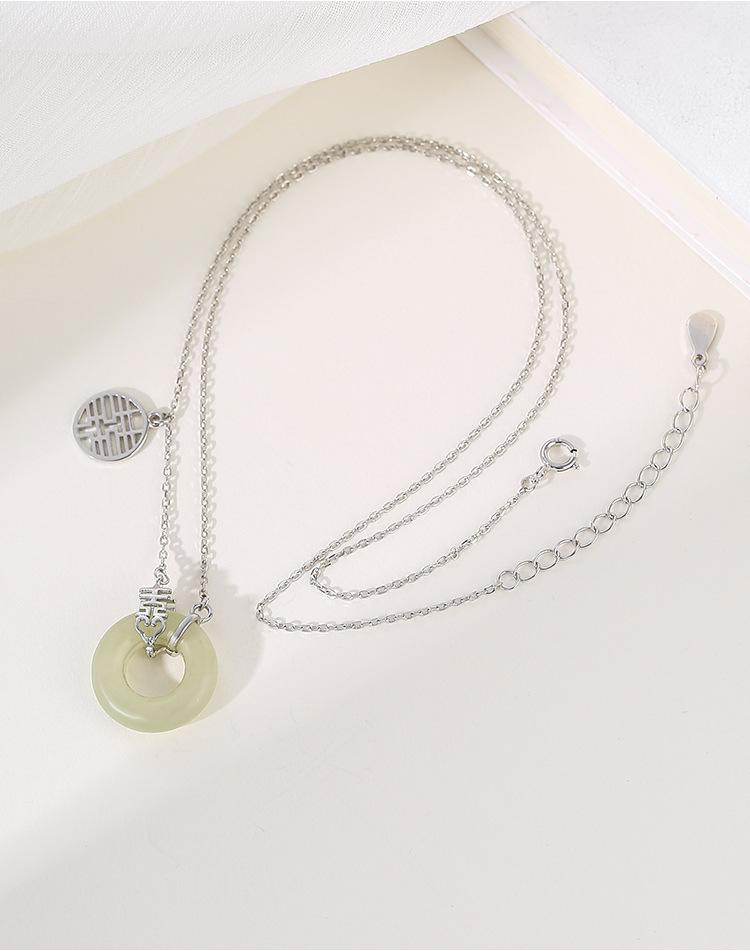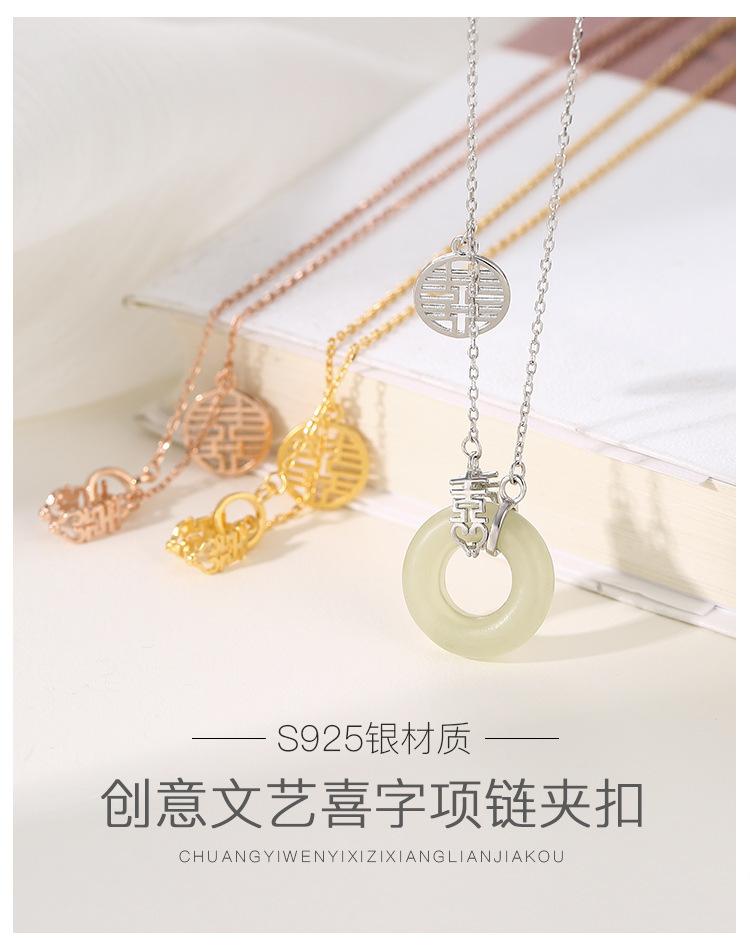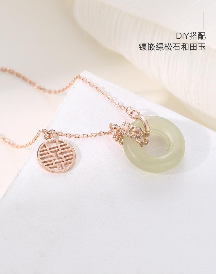 Colgante con hebilla Ping An, soporte vacío, plata de ley s925, con clip de donut, soporte para colgante, estilo folk vintage, juego de colgante de jade, cadena, soporte de plata para mujer