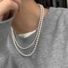 Diseño personalidad temperamento elegante moda lujo ligero estilo Chanel doble capa vidrio Shijia Perla lingote hebilla collar