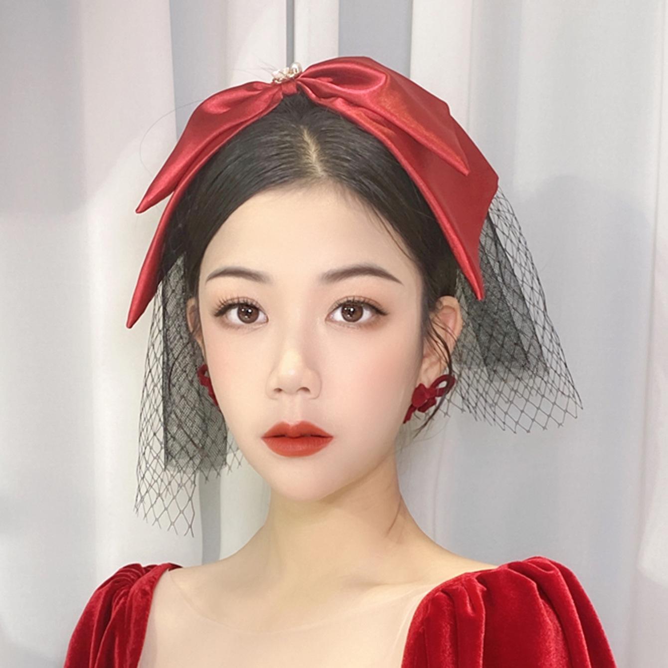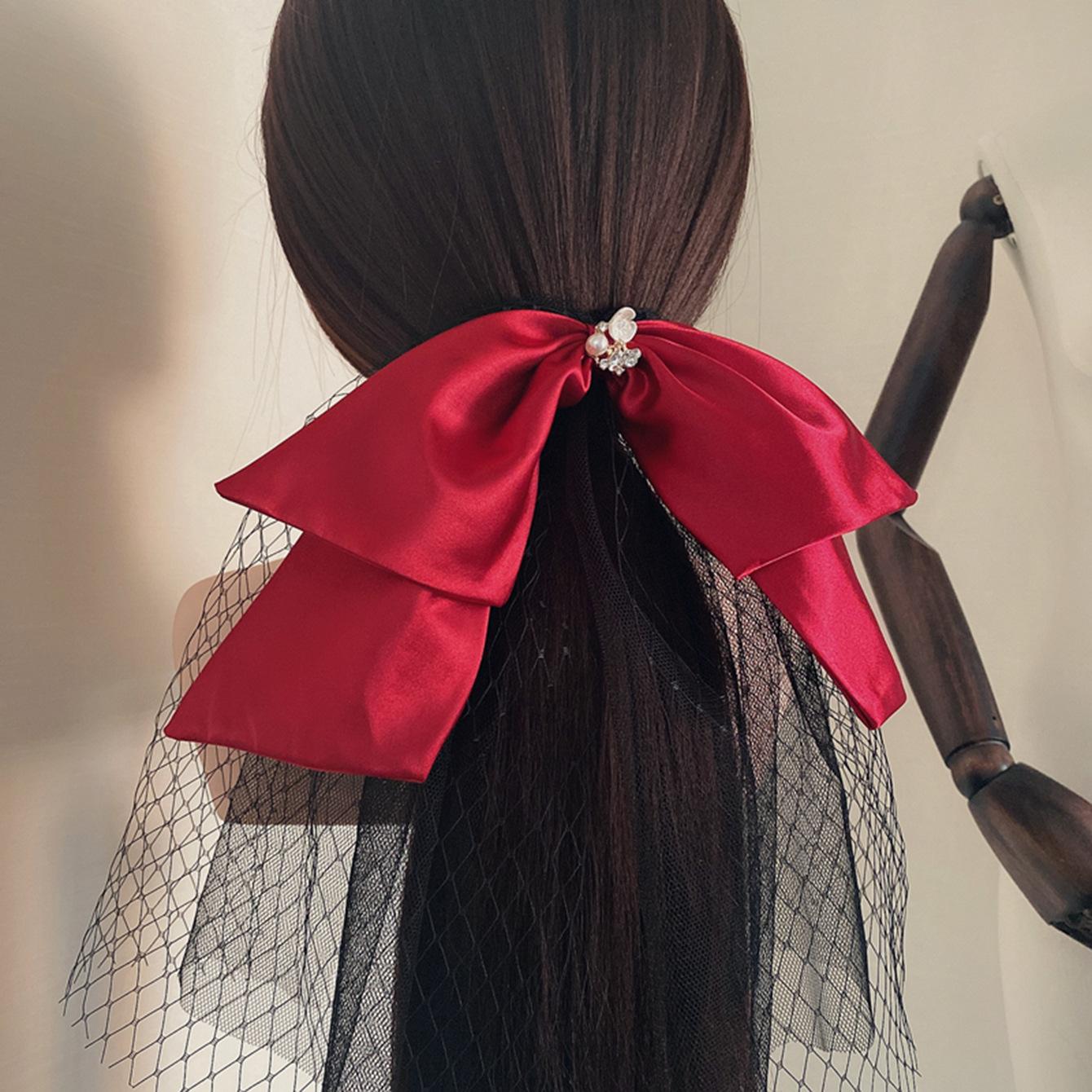 Accesorios para el cabello de novia para boda, horquilla de malla negra satinada de color rojo vino, accesorios para el cabello