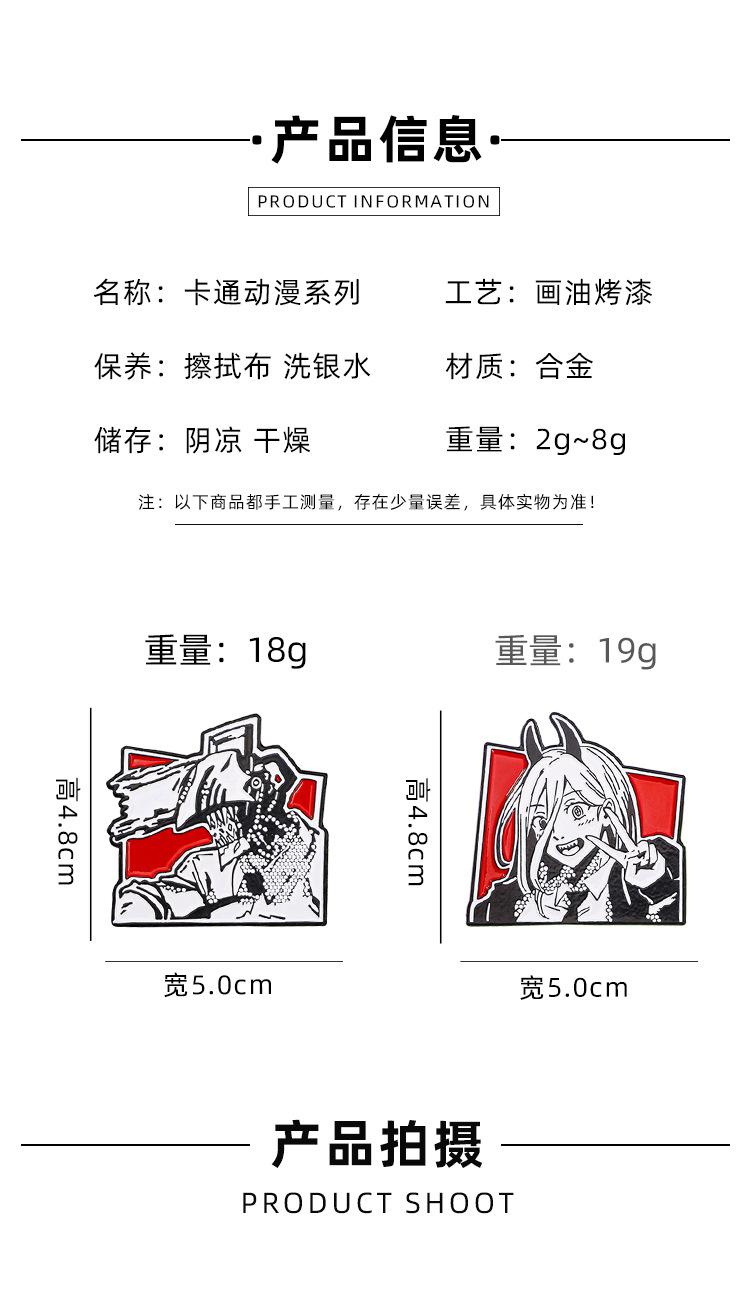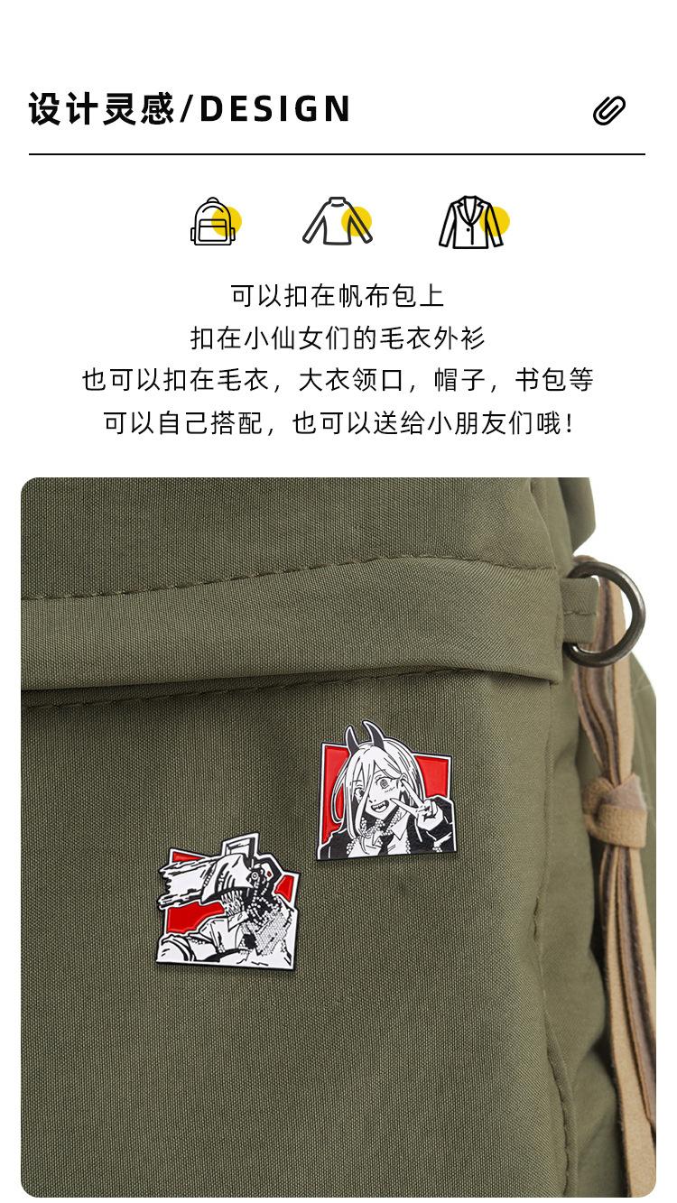 Broche periférico con personaje de anime, motosierra eléctrica Pava, personaje de dibujos animados, mochila escolar, ropa, joyería, insignia, venta al por mayor