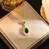 Collar de acero de titanio con colgante de rubí esmeralda transfronterizo europeo y americano que no se decolora, cadena de clavícula Joker de moda, joyería al por mayor