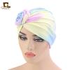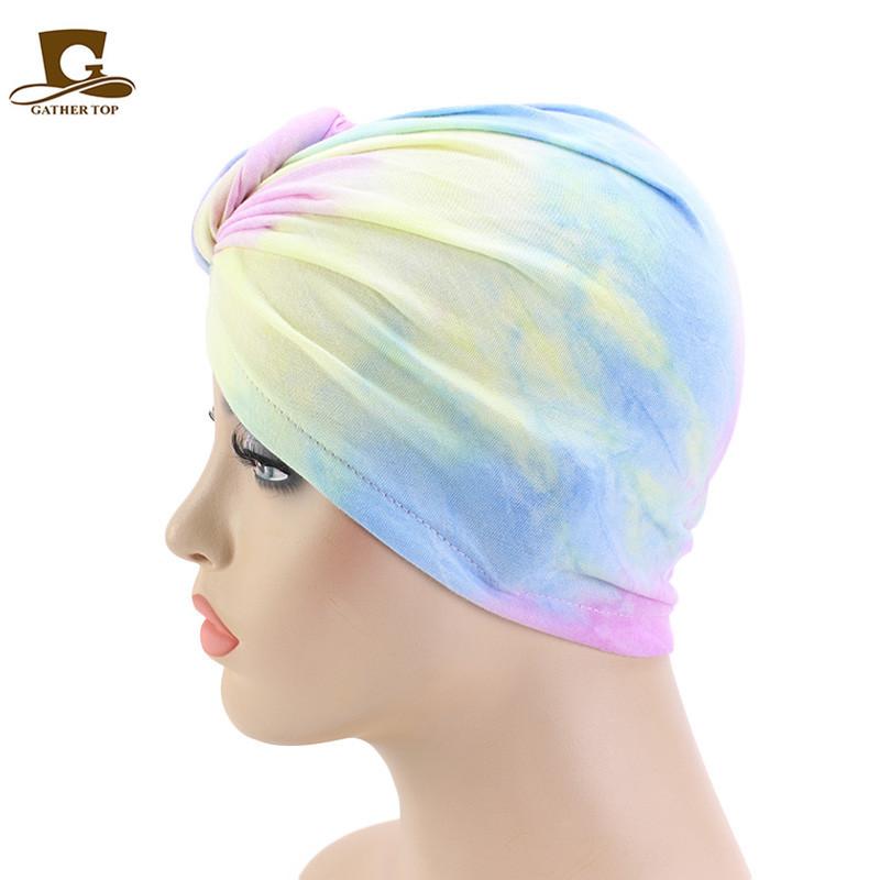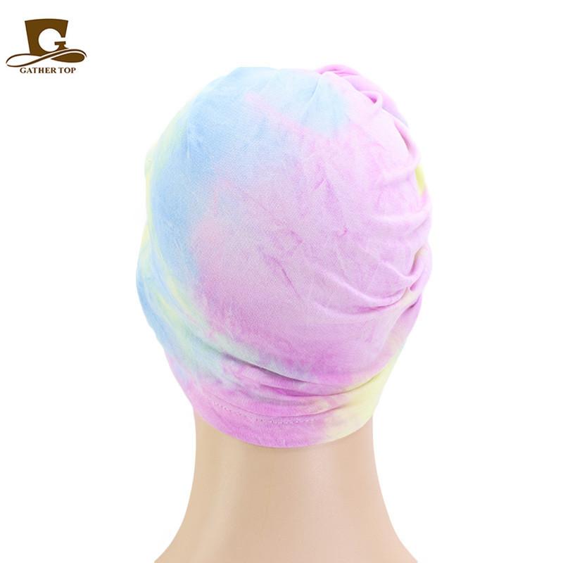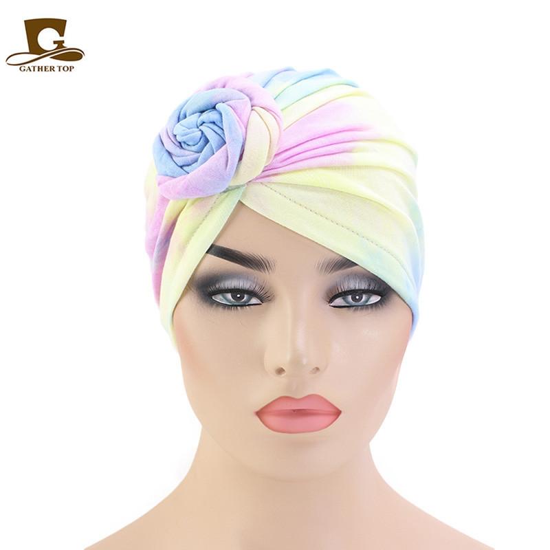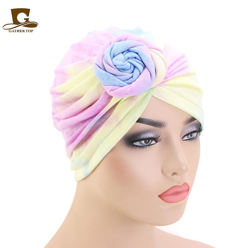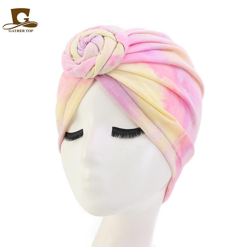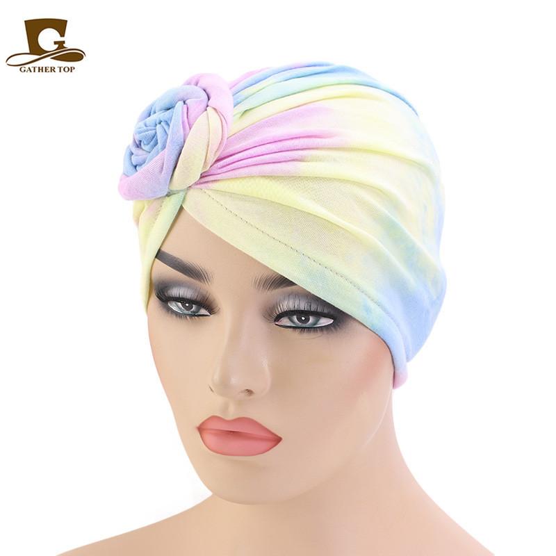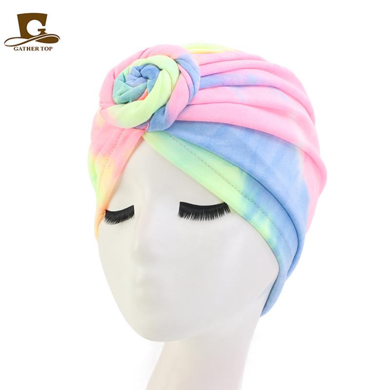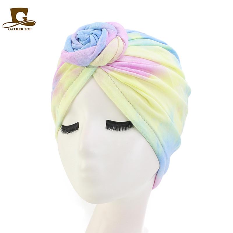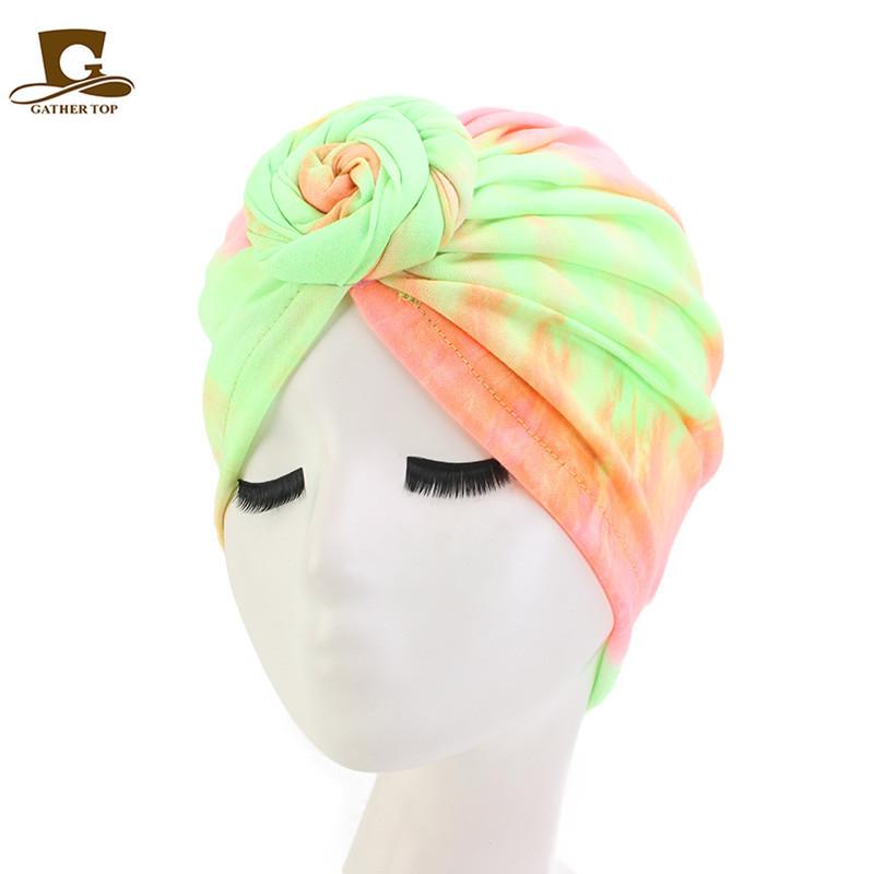 Sombrero de flores tie-dye popular europeo y americano, turbante de color fluorescente, sombrero de moda de estilo bohemioTJM-444