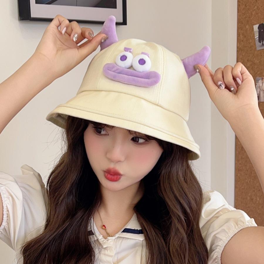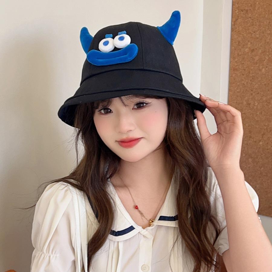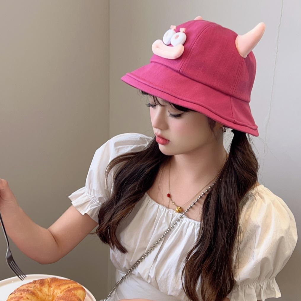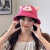 Lindo sombrero de pescador de dibujos animados para mujer, sombrero de sol para exteriores para padres e hijos, ala grande, moda que favorece el rostro, sombrero de sol para estudiante de primaria