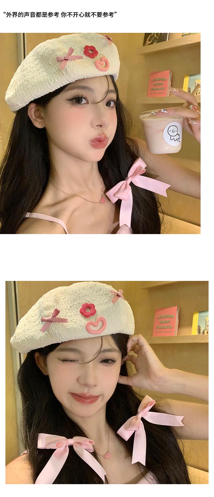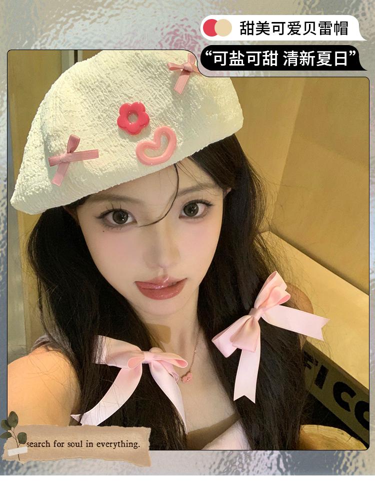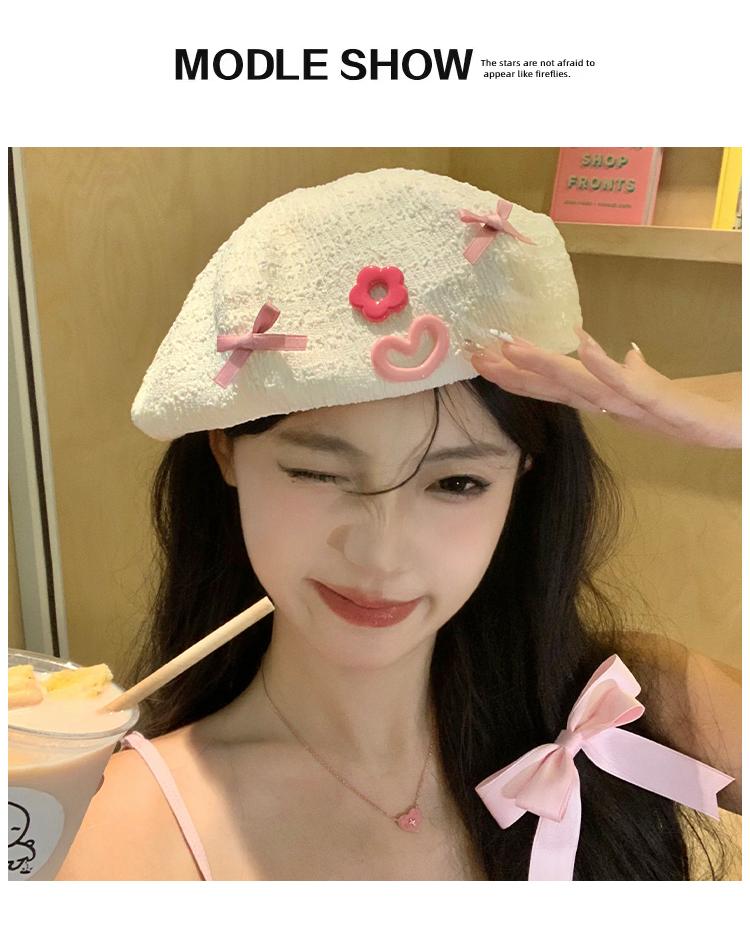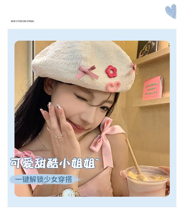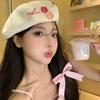 Boina Bow Love para Mujer Estilo Japonés Lindo Celebridad de Internet Combinable Sombrero de Pintor Bei Bei Sombrero Pequeño que Afina el Rostro de Cabeza Grande