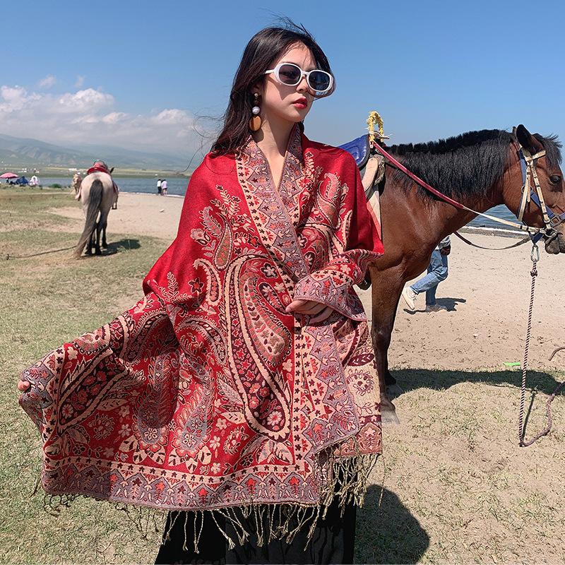 Bufanda de Algodón y Lino Estilo Étnico Chal de Verano Estilo Exótico Protección Solar Ropa de Viaje Chal de Viaje Cortavientos