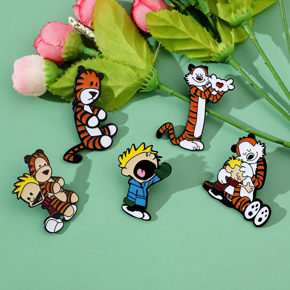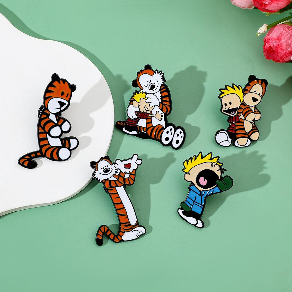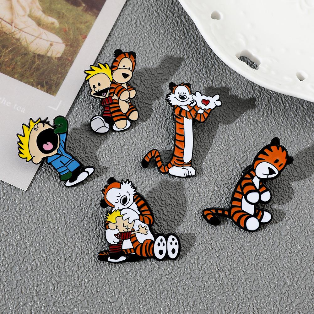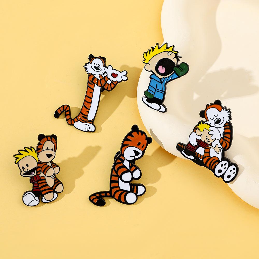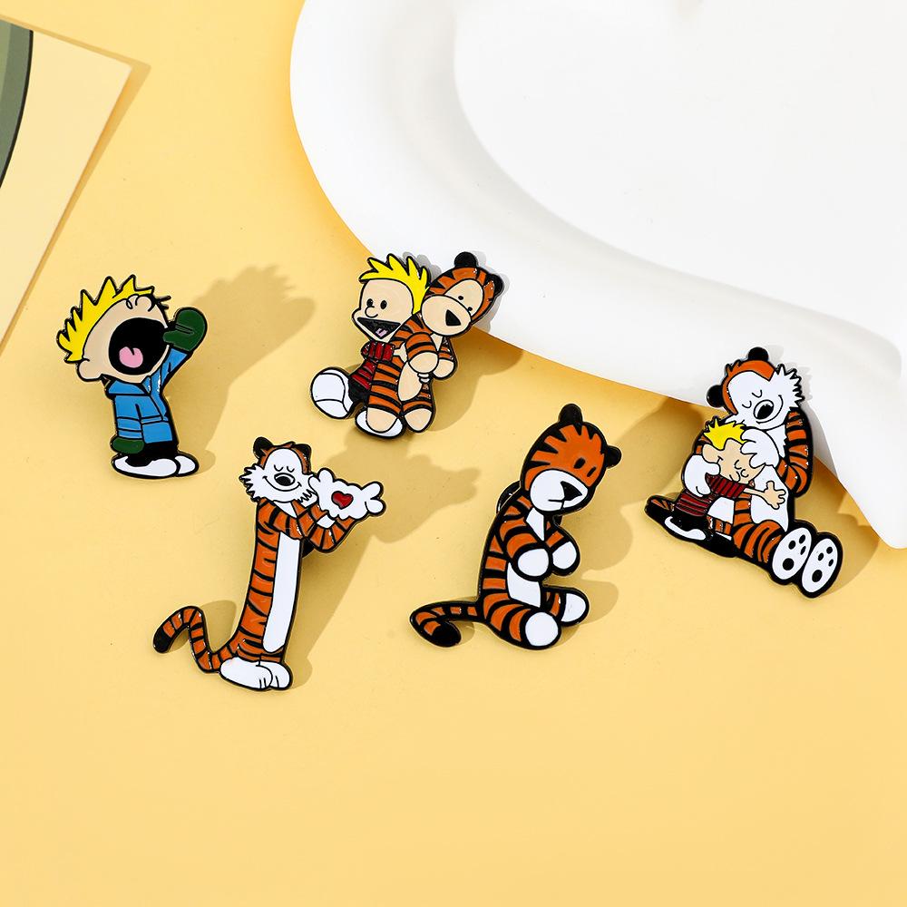 Bonita insignia de metal con forma de animal de dibujos animados, broche de tigre, accesorios para bolsos y ropa, pin decorativo.