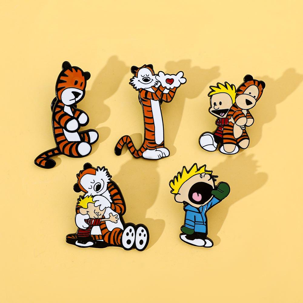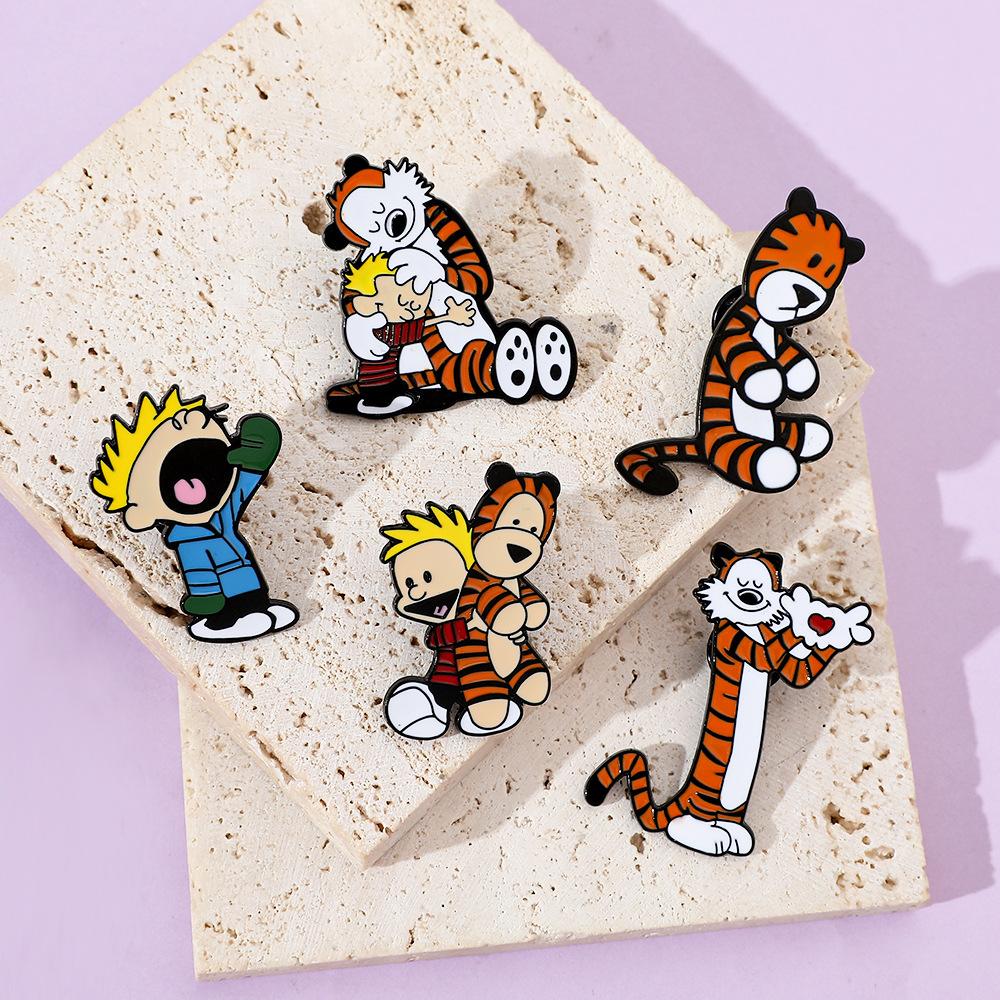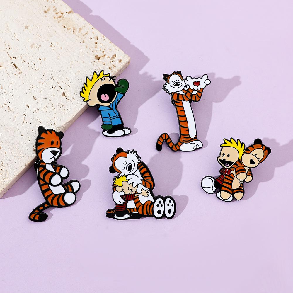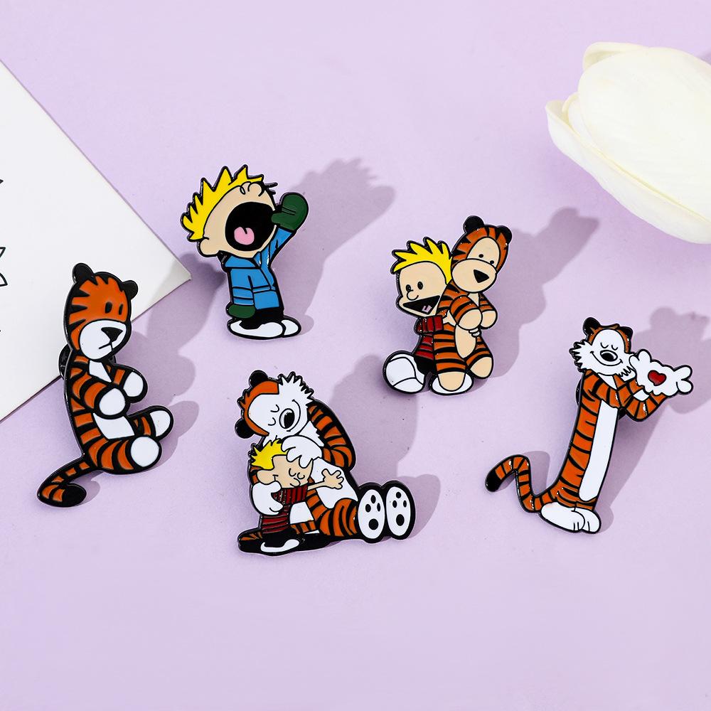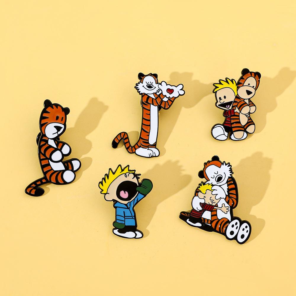 Bonita insignia de metal con forma de animal de dibujos animados, broche de tigre, accesorios para bolsos y ropa, pin decorativo.