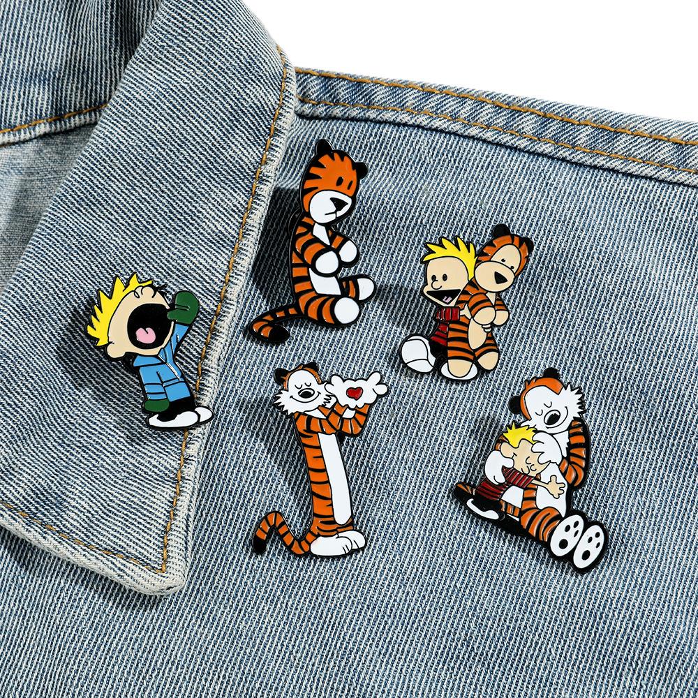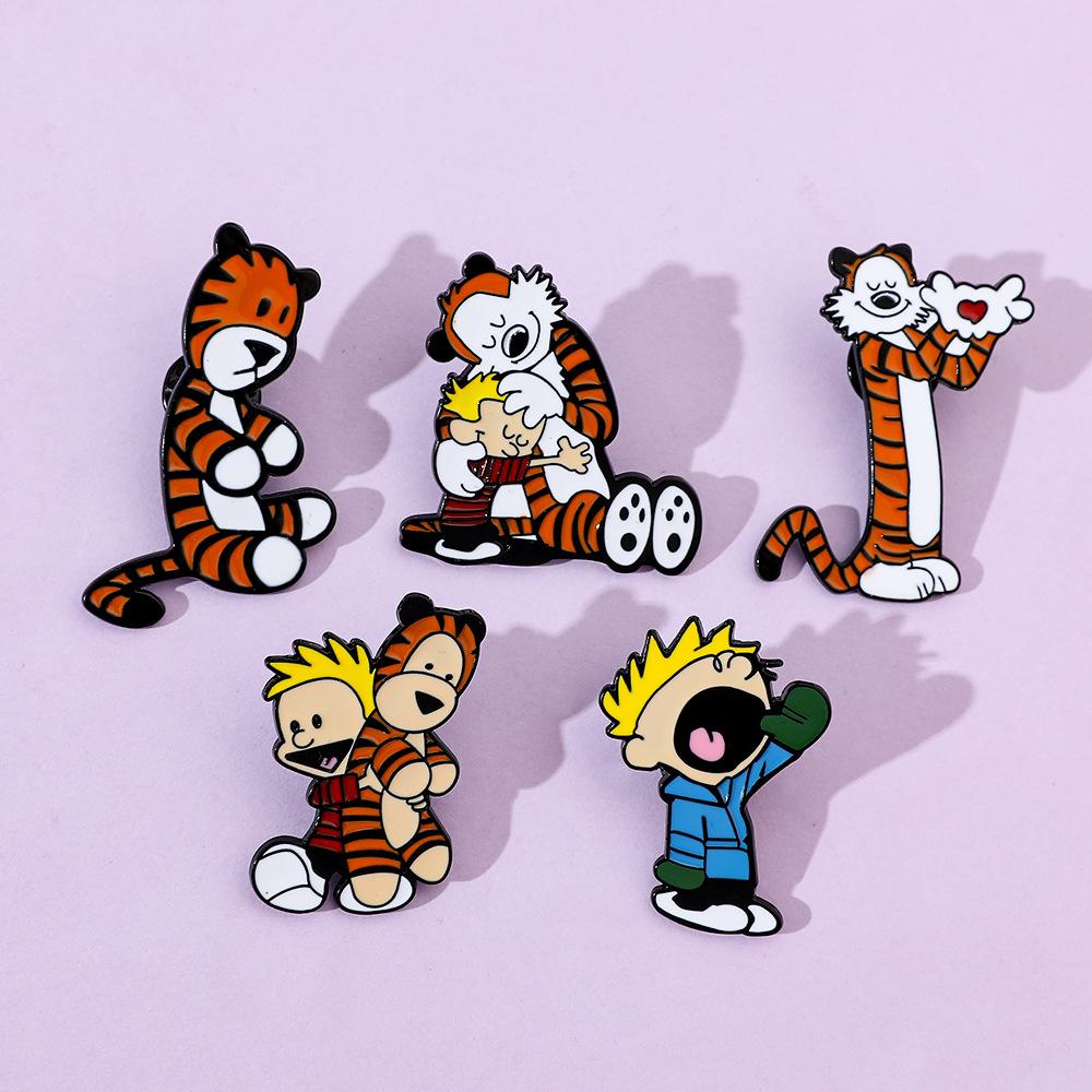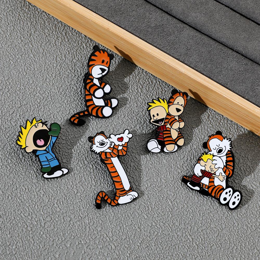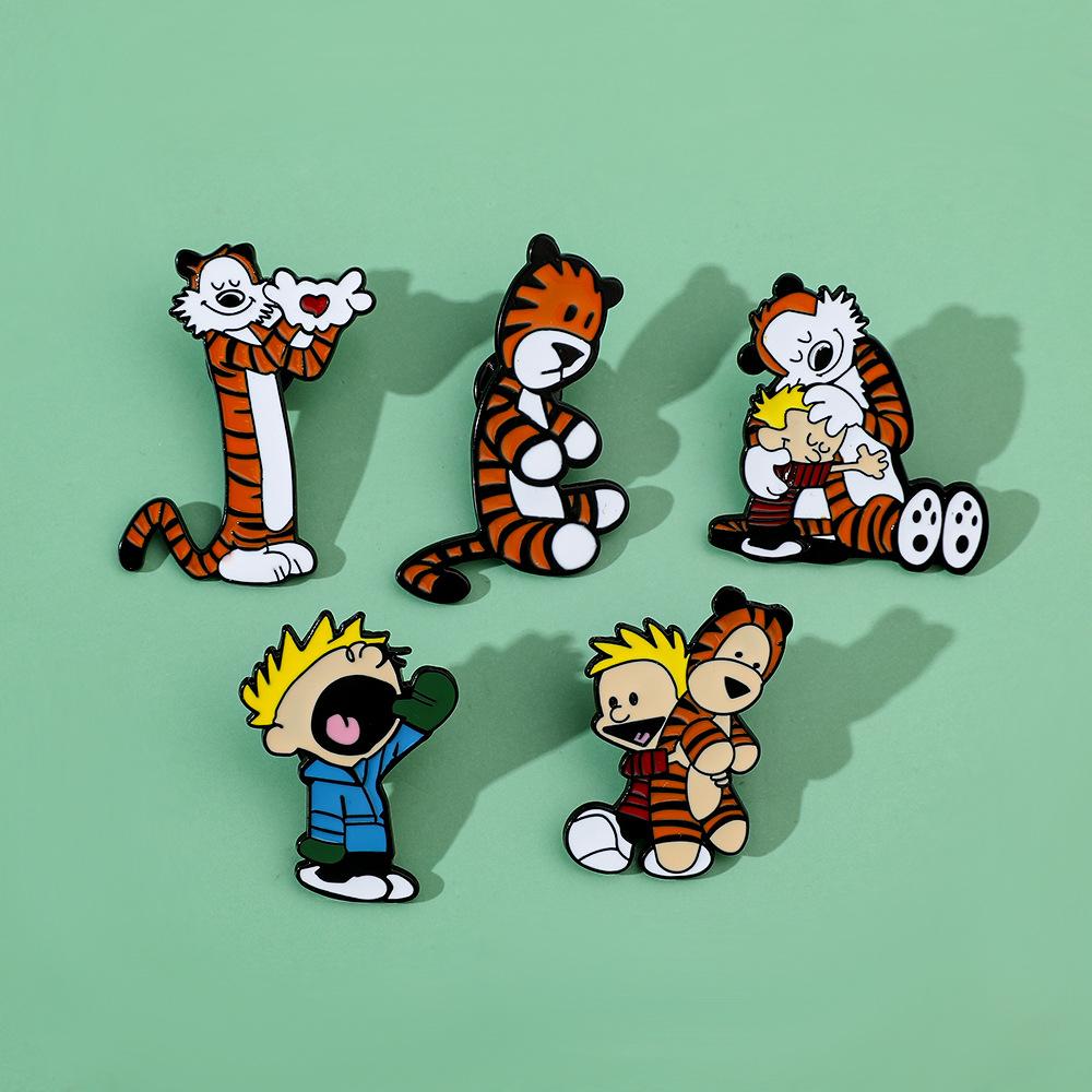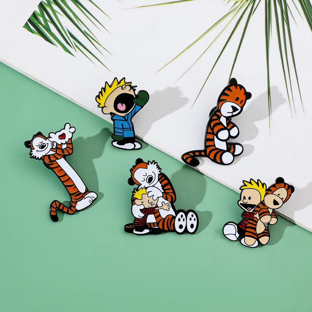 Bonita insignia de metal con forma de animal de dibujos animados, broche de tigre, accesorios para bolsos y ropa, pin decorativo.