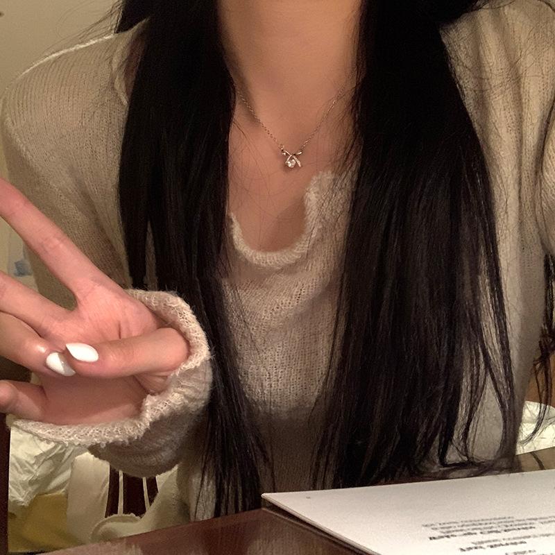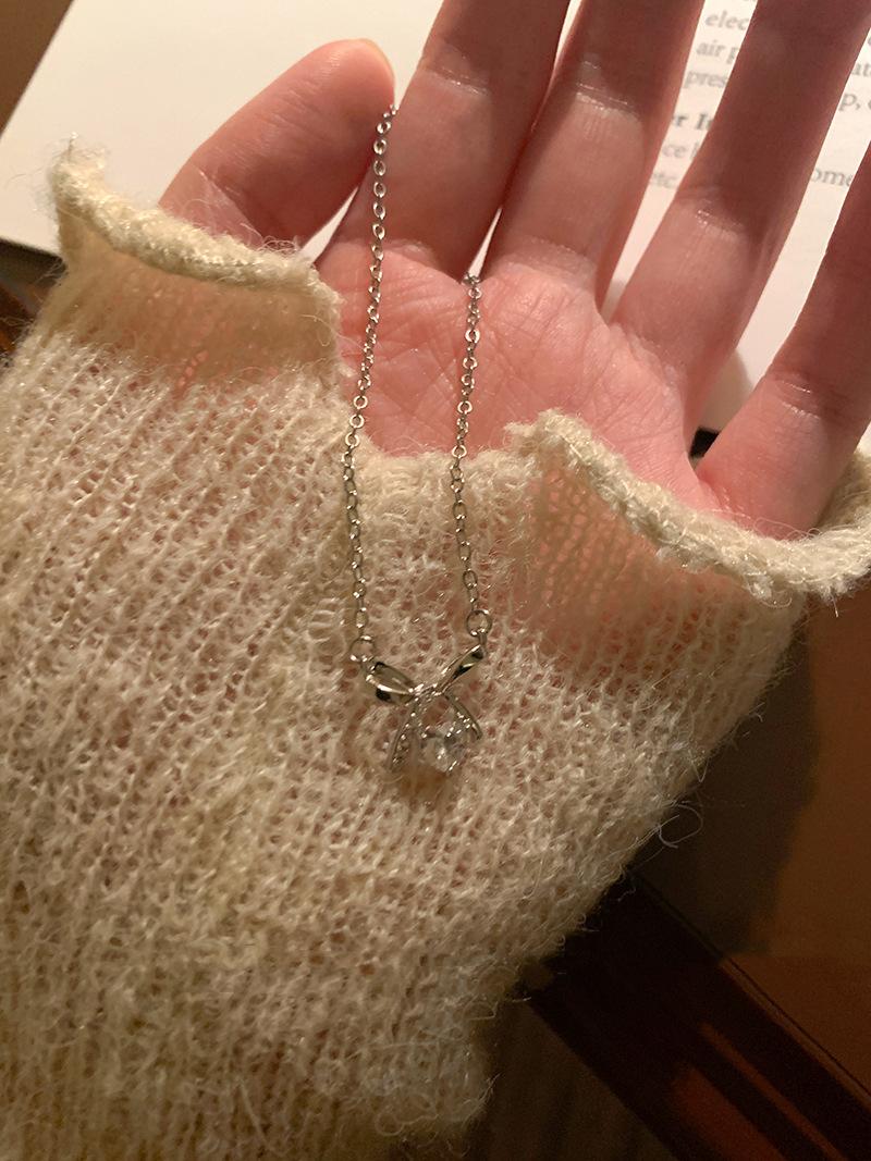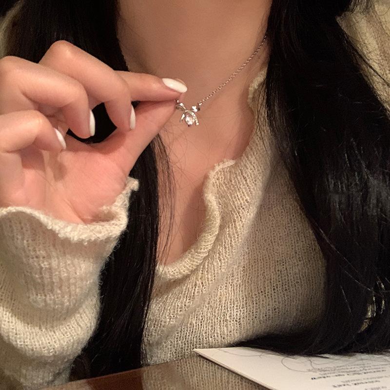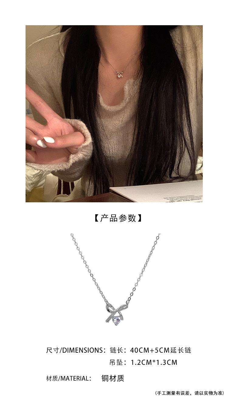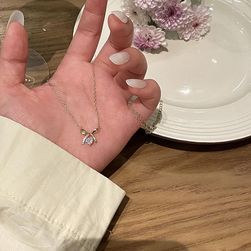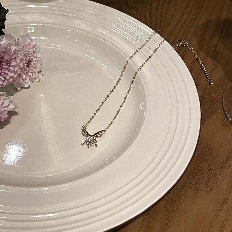 Exquisito collar con colgante de lazo de circonita para mujer, de verano, ligero, de lujo, con diseño de nicho y cadena de clavícula sencilla de alta calidad.