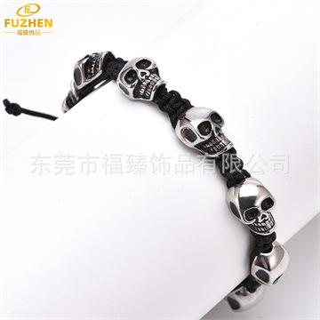 [Nombre] Pulseras de moda popular europea y americana para hombres y mujeres, tejidas punk no convencionales con calaveras