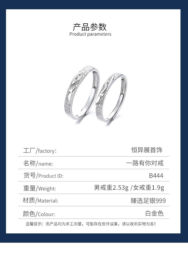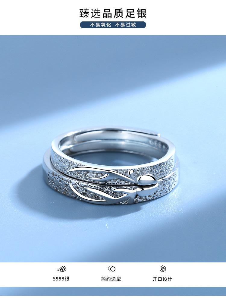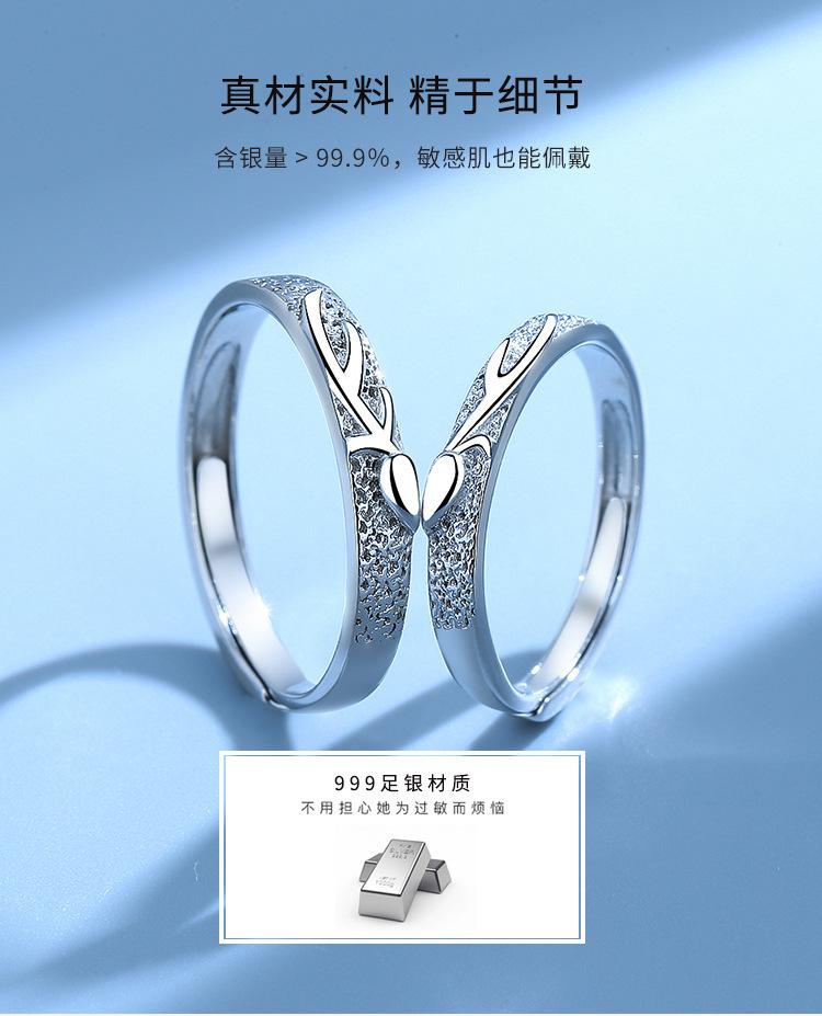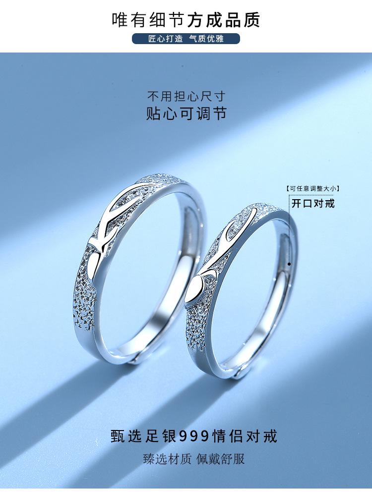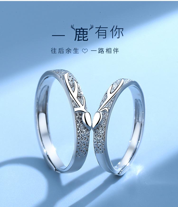 Plata Esterlina 999 Un Ciervo Te Tiene Anillo de Pareja para Hombre y Mujer Un Par con Sentido del Diseño Nicho Par de Precaución Regalo de San Valentín para Estudiantes