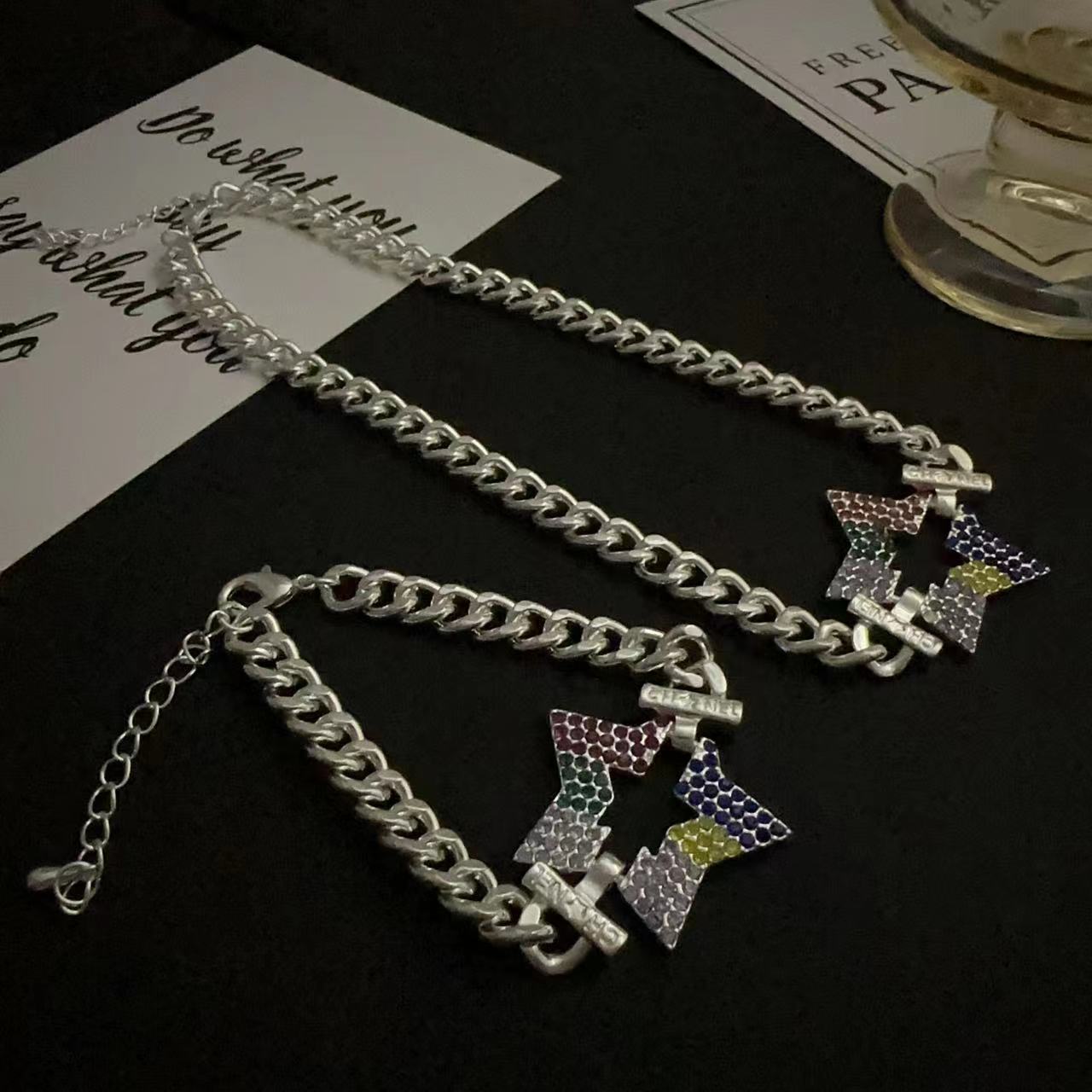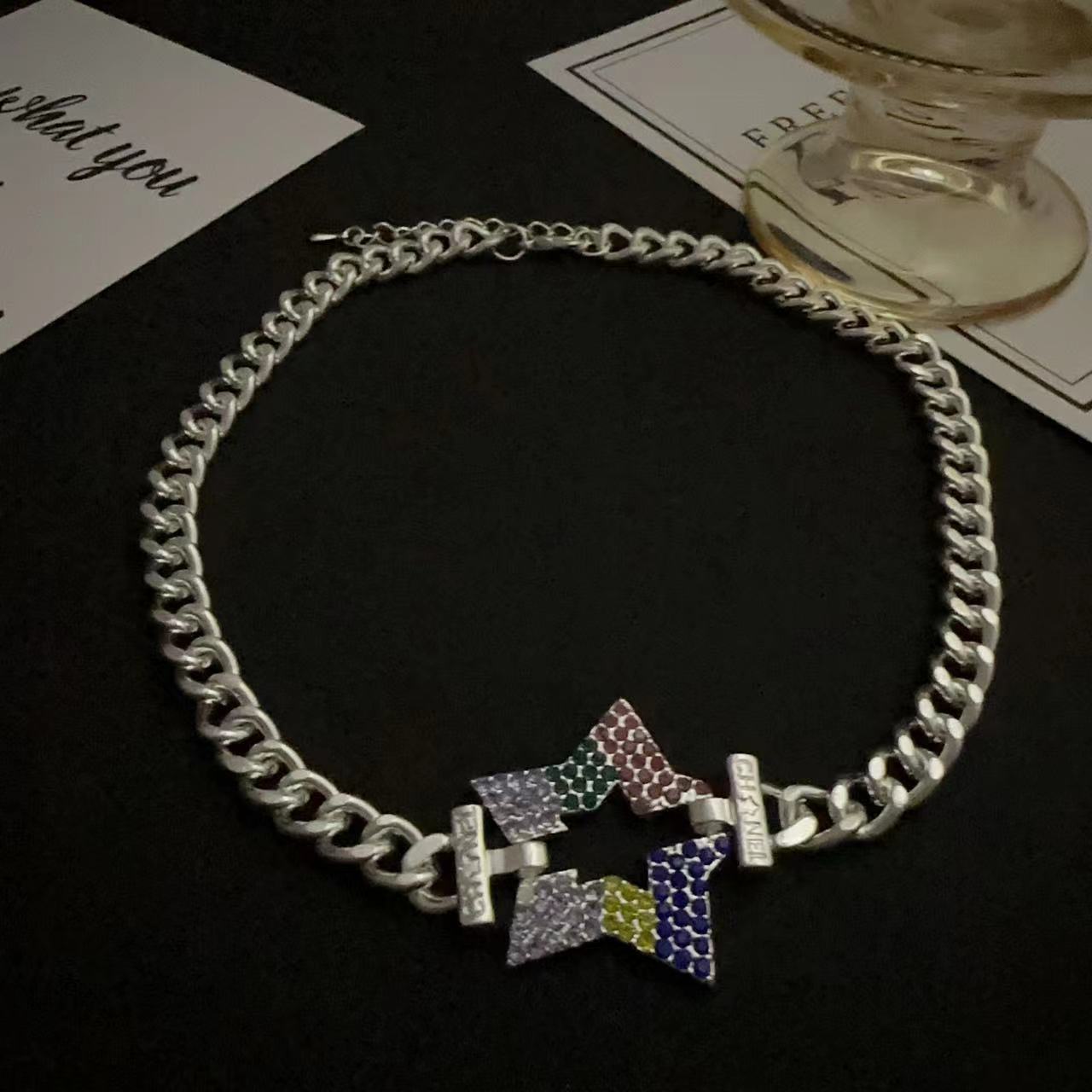 Collar de diamantes con incrustaciones de estrellas de colores, estilo retro de alta calidad, estilo chic y atractivo, ideal para combinar con todo tipo de accesorios.